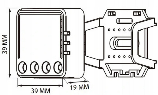 Małe wymiary pozwalają na montaż urządzenia w puszce ściennej lub oprawie oświetleniowej, a także na szynie DIN w skrzynce bezpiecznikowej za pomocą uchwytu zawartego w zestawie.