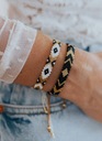 Czarna baza i złote geometryczne wzory nadają jej eleganckiego, ale jednocześnie uniwersalnego charakteru. Świetnie sprawdzi się zarówno solo, jak i w zestawie z innymi bransoletkami w stylu boho.