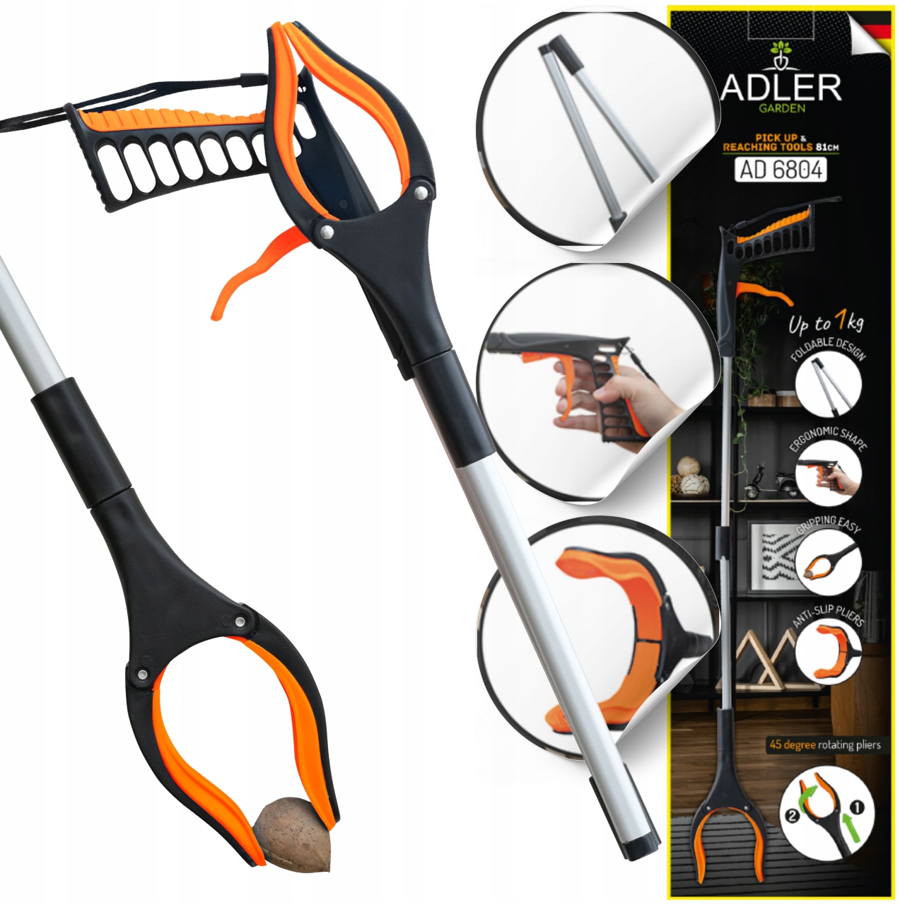 Chwytak wielofunkcyjny to praktyczne narzędzie, które ułatwia codzienne życie, umożliwiając podnoszenie lekkich przedmiotów bez potrzeby schylania się. Idealny do sięgania po trudno dostępne przedmioty takie jak liście, śmieci, zabawki dzieci, piloty do telewizora, gazety, a także do zasuwania zasłon czy firanek. Przyrząd doskonale sprawdza się także w wąskich przestrzeniach, np. za pralką, oraz jako narzędzie do czyszczenia trudno dostępnych miejsc.