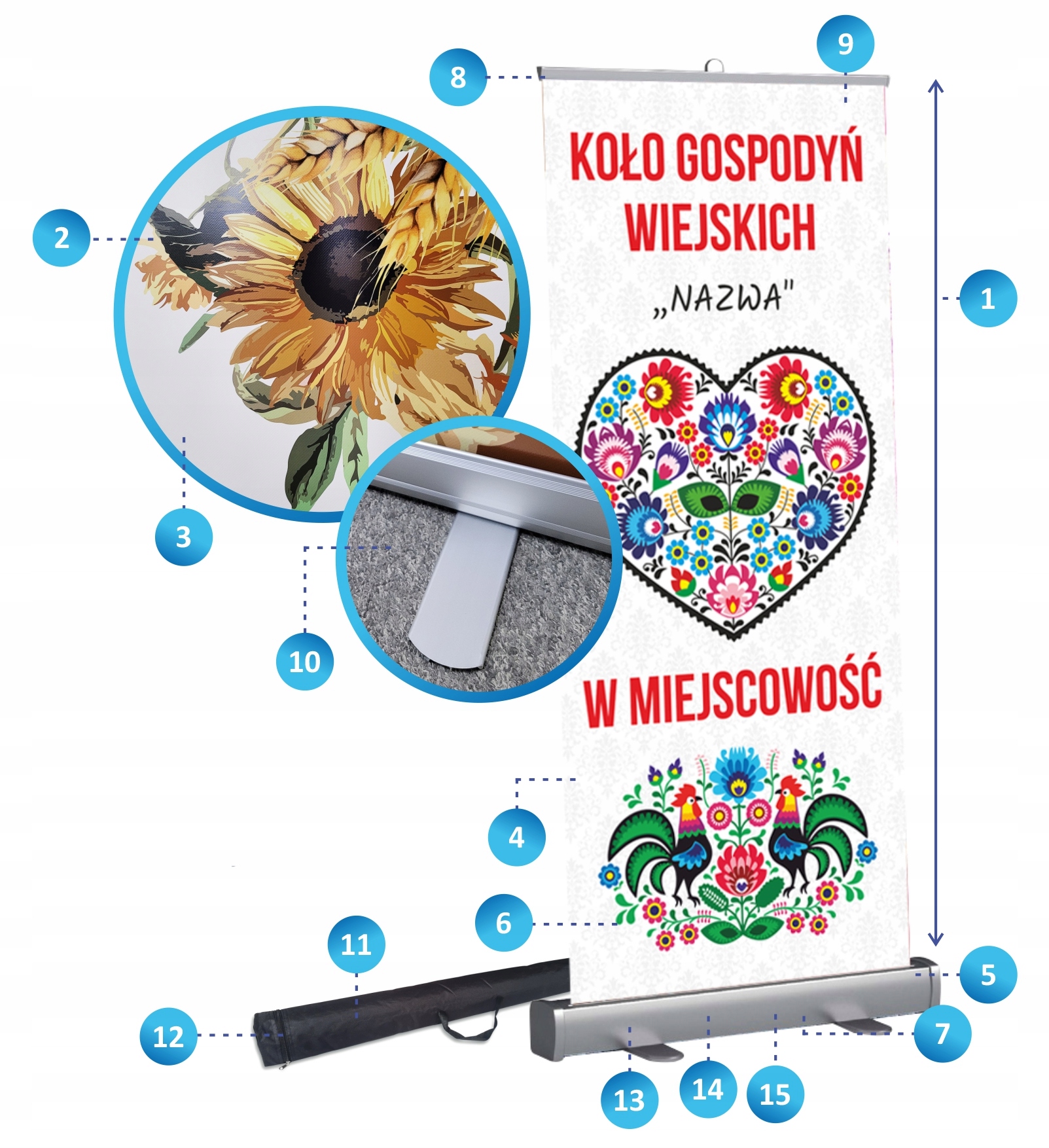 Takie rozwiązanie gwarantuje stabilność na długi czas, roll-up prezentuje się bardzo estetycznie, tyczka nie wystaje ponad grafikę.