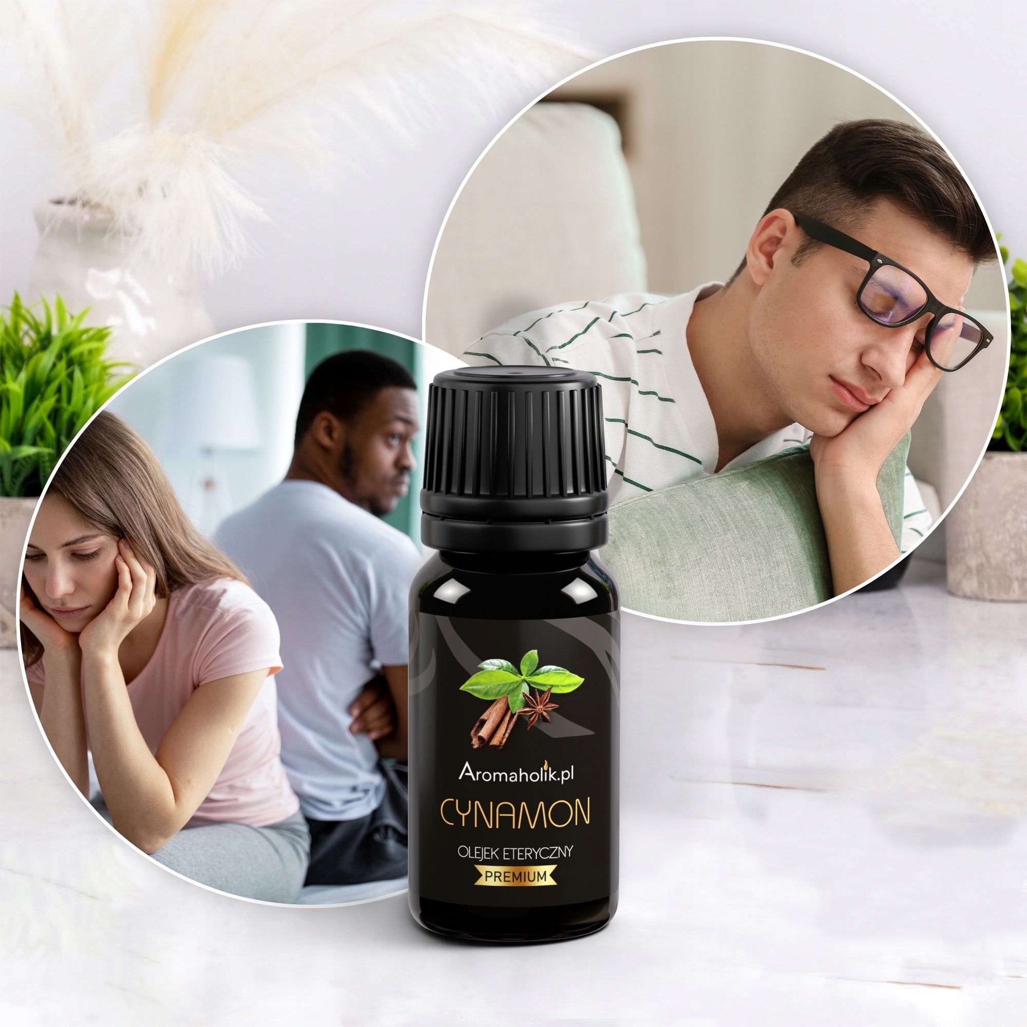 Cynamonowy olejek eteryczny pozwoli Tobie w pełni doświadczyć ciepłego, korzennego zapachu, który posiada silne właściwości rozgrzewające i przeciwzapalne. W trakcie jego stosowania poczujesz właściwości stymulujące, które pomogą Ci pobudzić krążenie. Olejek cynamonowy jest jednym z najsilniejszych naturalnych antyseptyków, a aktywność przeciwdrobnoustrojowa rośnie wraz ze wzrostem stężenia olejku.