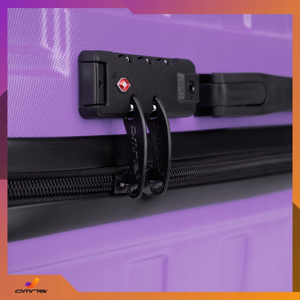 Nowoczesny wygląd, elegancki fioletowy kolor i błyszcząca powłoka sprawiają, że walizka prezentuje się bardzo efektownie.