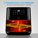 Odkryj kolejny poziom gotowania dzięki naszej frytownicy powietrznej, wyposażonej nie w jeden, ale w dwa wysokiej jakości elementy grzejne ze stali nierdzewnej. Górny element grzejny o imponującej mocy 1800 W i dolny element o mocy 350 W współpracują w doskonałej harmonii, zapewniając precyzyjnie chrupkość i smak.