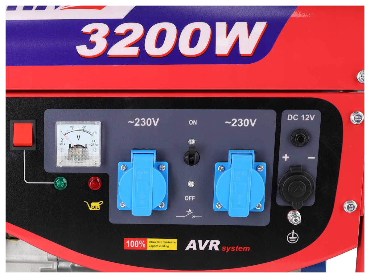 Agregat prądotwórczy DEDRA DEGB3600K ma system AVR - układ pozwalający utrzymać właściwe napięcie wyjściowe zespołu prądotwórczego. System AVR umożliwia zasilanie odbiorników czułych na jakość prądu zasilania np. telewizory LCD, laptopy, wzmacniacze.