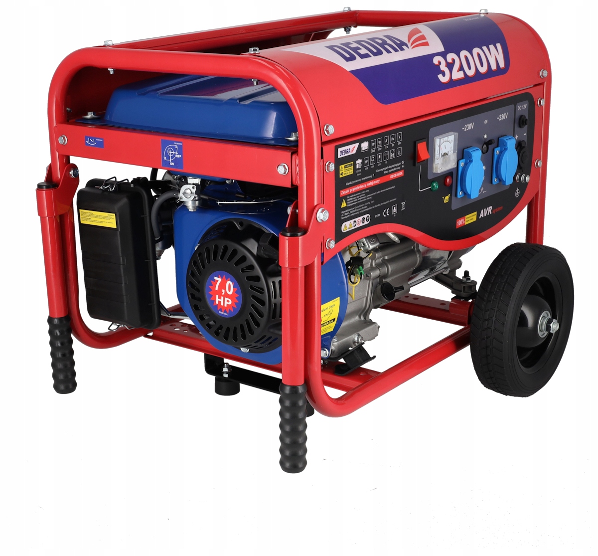 Agregat prądotwórczy DEDRA DEGB3600K to urządzenie elektroenergetyczne stanowiące samodzielne źródło prądu. Przenośny jednofazowy generator prądu o maksymalnej mocy wyjściowej 3200W może być wykorzystany do generowania prądu zmiennego, zasilania odbiorników elektrycznych o napięciu 230V, a także jako awaryjne zasilanie w gospodarstwach domowych, na działkach oraz na budowie.