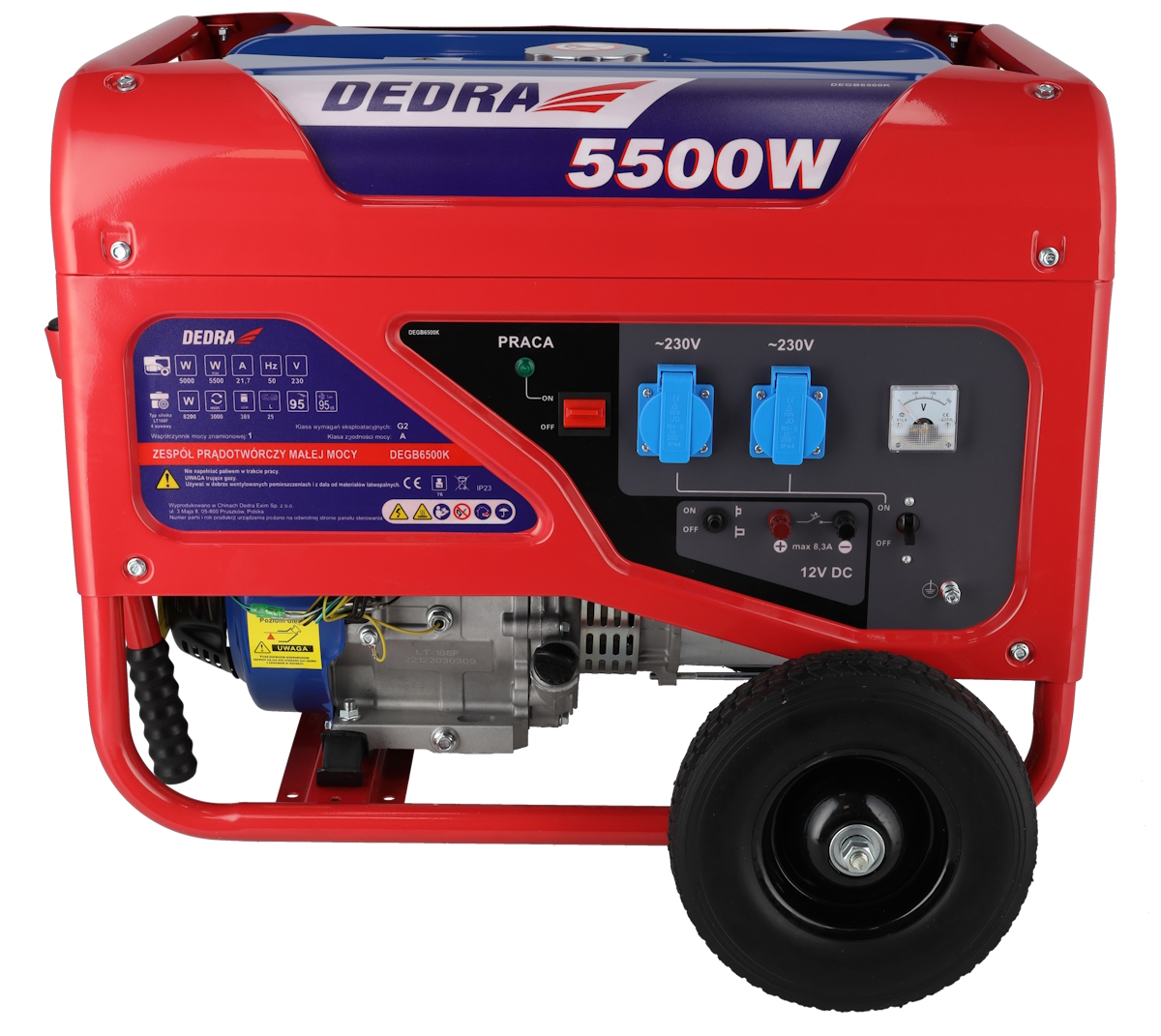 Генераторная установка DEDRA DEGB6500K-это автономное силовое устройство источник тока. Портативный однофазный генератор тока с максимальной выходной мощностью 5500 Вт может использоваться для генерации переменного тока, питания электрических приемников с напряжением 230В, а также для резервного питания в домашних хозяйствах, на участках и на строительство.
