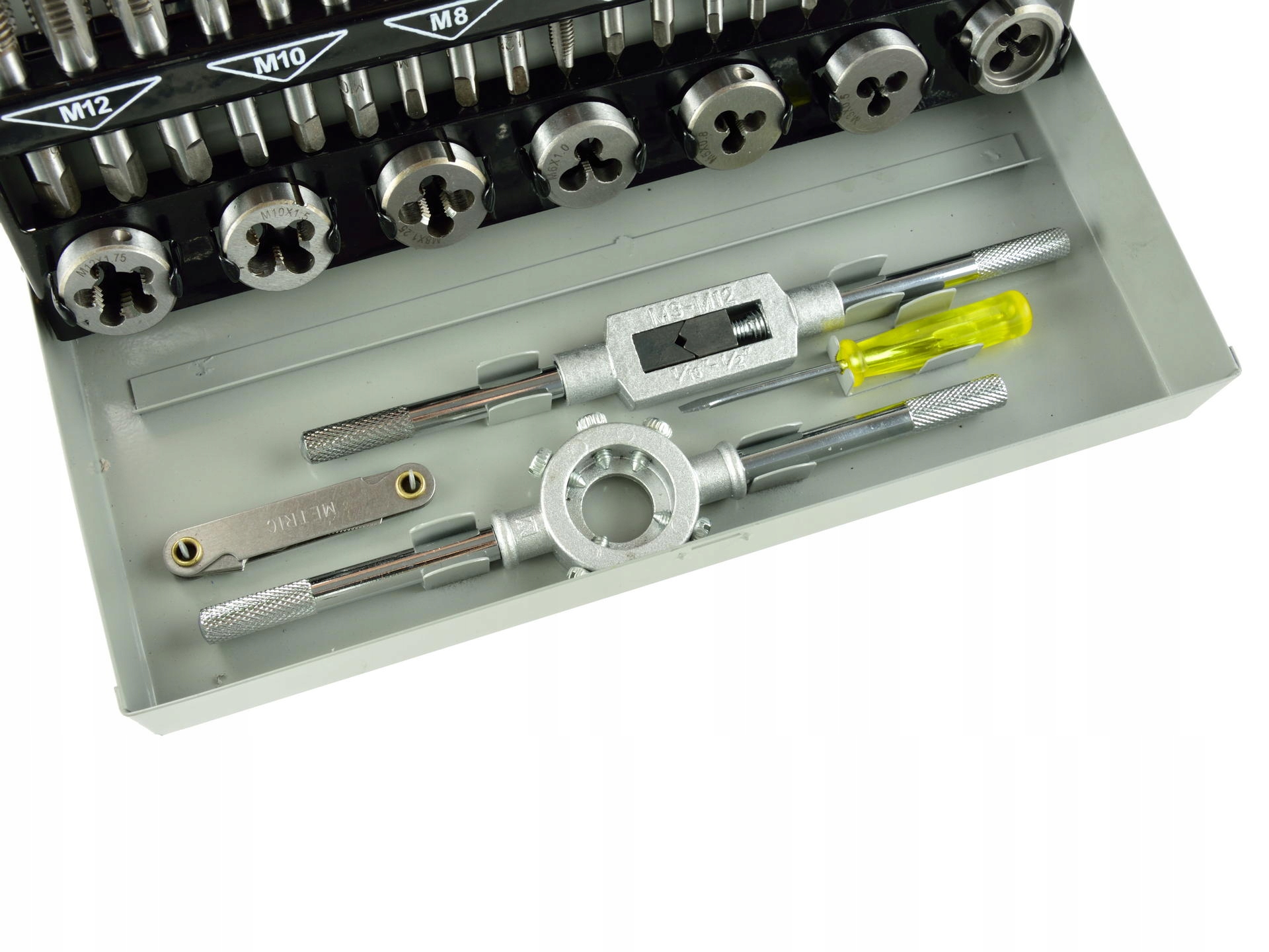 Nowoczesny zestaw gwintowników i narzynek M3 - M12. W skład zestawu wchodzą 32 różne narzędzia wykonanych z wysokogatunkowej stali.
