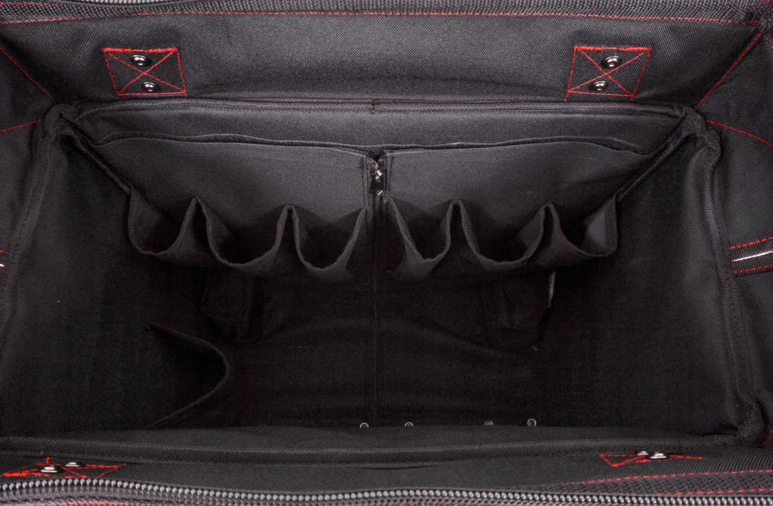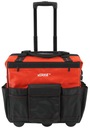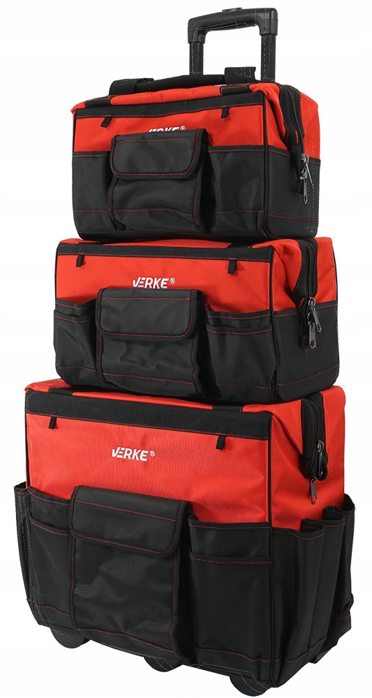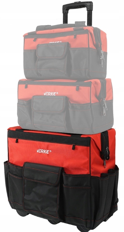 Torba narzędziowa Verke jest idealna do przechowywania i transportu narzędzi i akcesoriów na placu budowy lub w garażu czy warsztacie. Charakteryzuje się dużumi wymiarami oraz sztywną konstrukcją co czyni ją bardzo porczną oraz praktyczną torbą. Posiada wewnętrzne i zewnętrzne kieszenie do przechowywania wkrętaków, szczypiec i innych małych narzędzi. Duża komora zamykana na zamek zapewnia wygodny dostęp do narzędzi. Szwy oraz główny zamek wykonane w wersji wzmocnionej, przystosowane do dużych obciążeń. Teleskopowy uchwyt z blokadą wraz z mocnymi kołami ułatwi transport ciężkiej zawartości. Torba wyposażona jest w mocny uchwyt wzmocniony nitami. Materiał poliester 1680D. Tkaniny o splotach 1680D należą do grupy najbardziej wytrzymałych i trwałych materiałów. Gęsta gramatura zapewnia wyrobom wyjątkową wytrzymałość oraz odporność na różnego rodzaju uszkodzenia mechaniczne. Tkaniny charakteryzują się wyraźną strukturą splotu oraz posiadają dodatkowe powleczenie z PU. Taki sposób impregnowania wzmacnia materiał i nadaje tkaninie właściwości bryzgoszczelne.