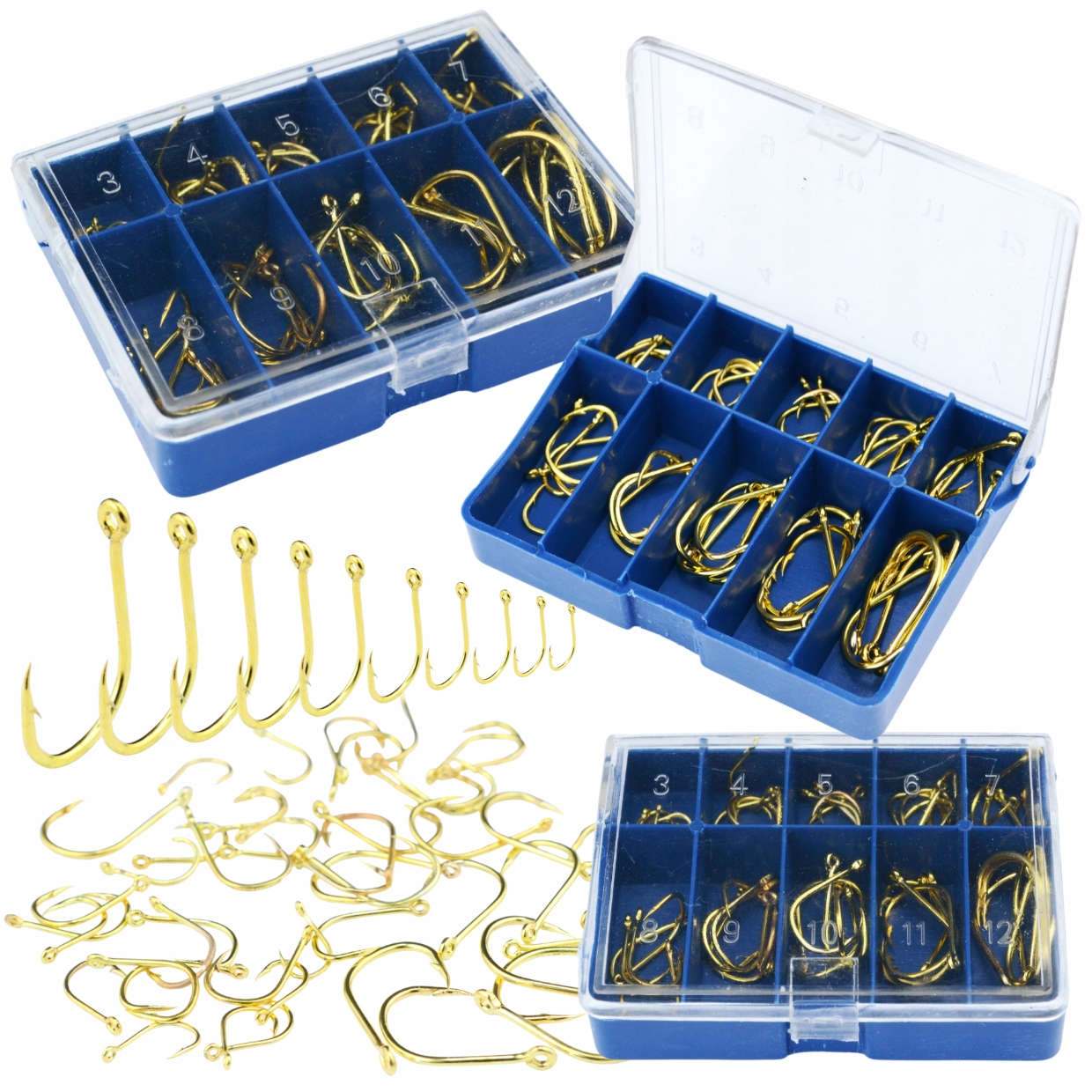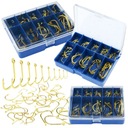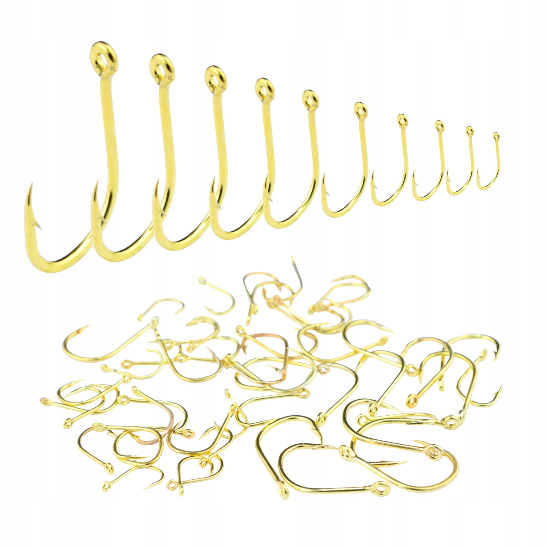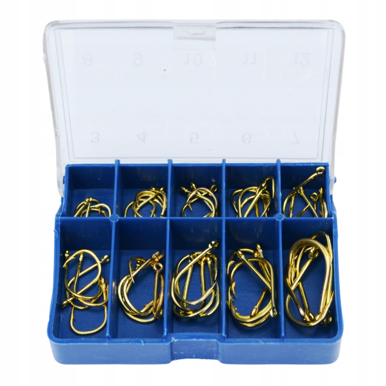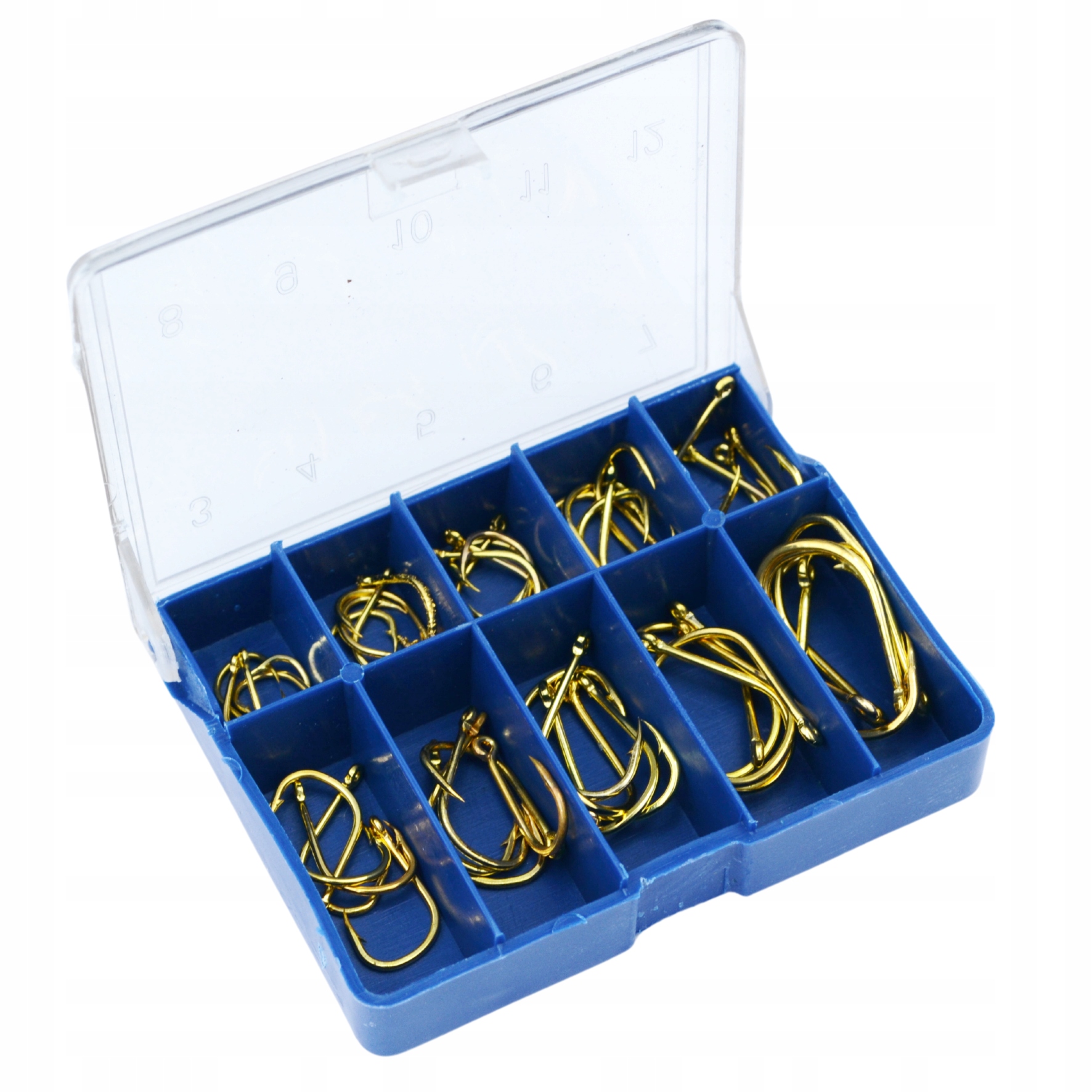 Zestaw 50sz złotych haczyków w 10 rozmiarach