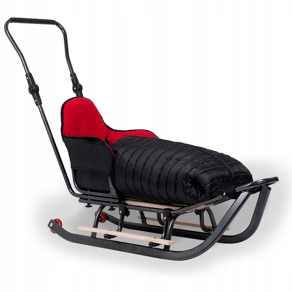 Polskie wielofunkcyjne sanki, wyposażone w śpiwór, pchacz, podnóżki i kółka model COMPLEX_Pik Line na sezon 2024/2025 znakomicie sprawdzą się w śnieżne dni i zapewnią doskonały wypoczynek i zabawę Twojemu dziecku.
