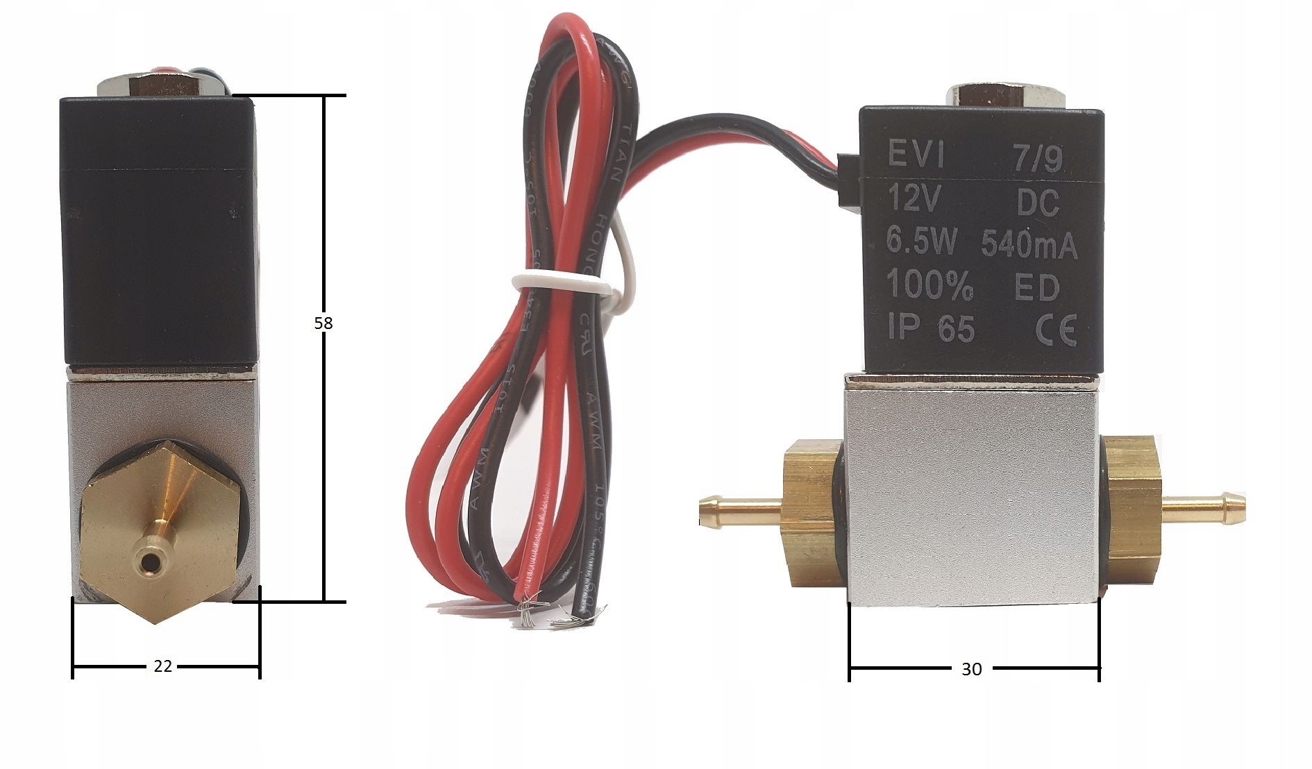 Zaworu 12V z króćcami na wężyk 3,5 mm