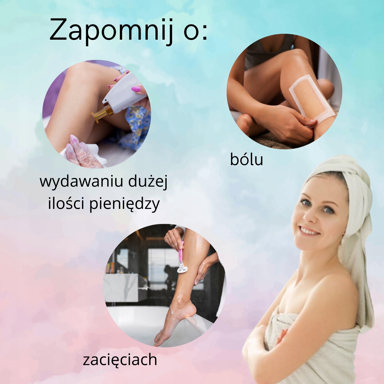 ✔ Depilacja bez kosmetyków – technologia ta, nie wymaga użycia kremu czy środków depilacyjnych zawierających szkodliwe substancje.