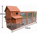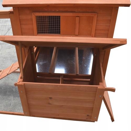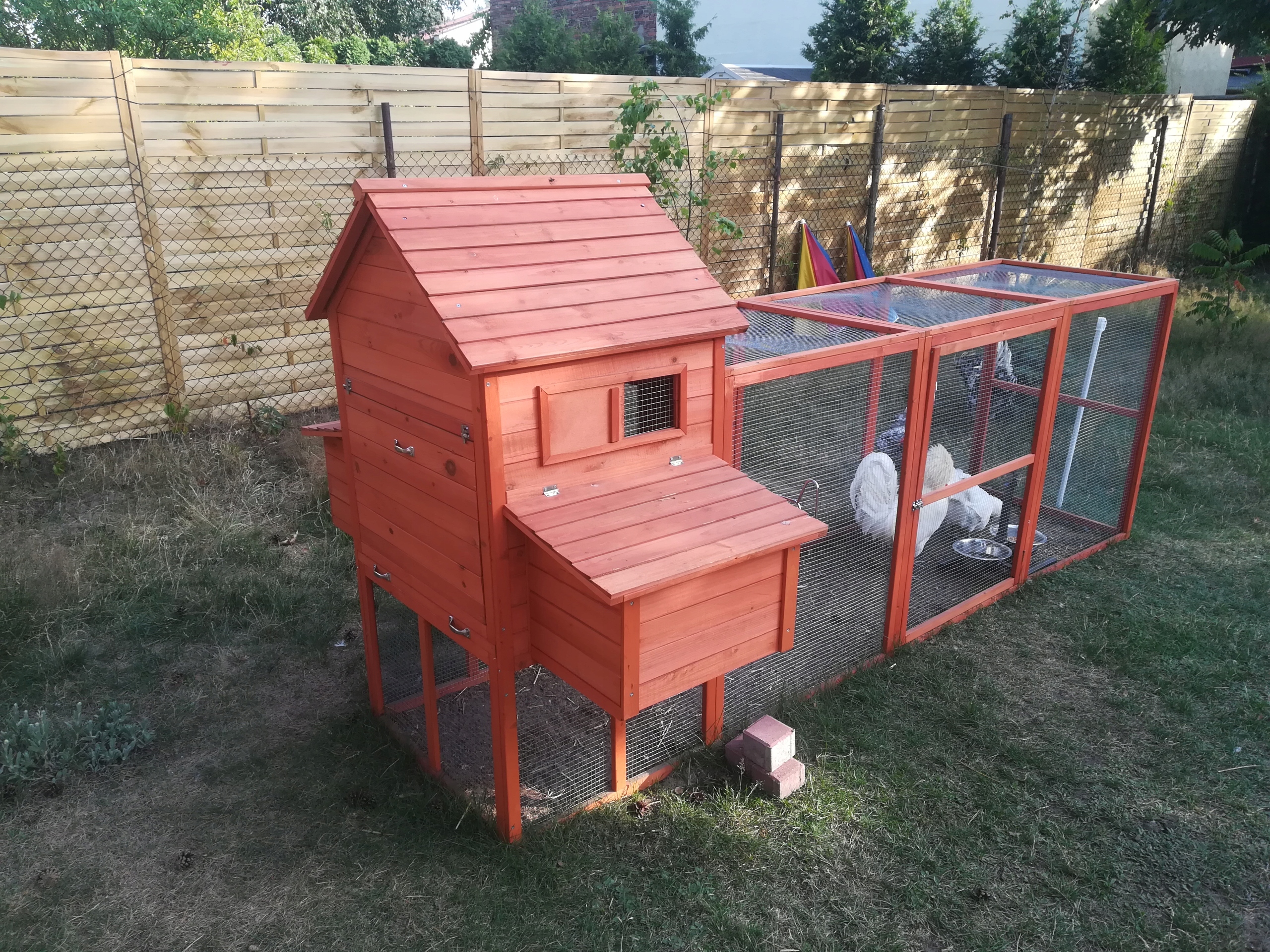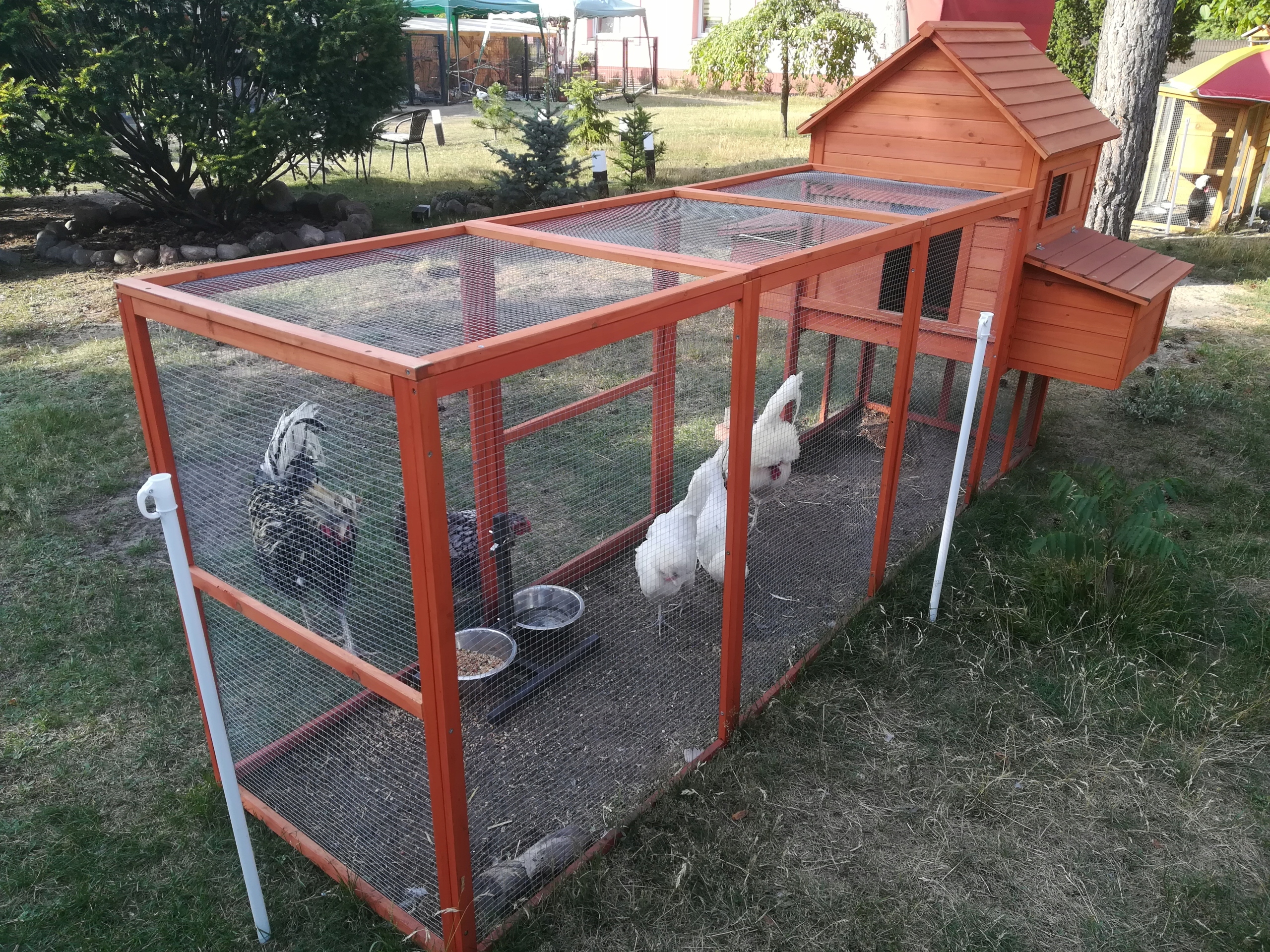 Jest to piekny i przede wszystkim dobrze przemyslanz kurnik, ktory oferuje zwierzetom pelen komfort i swobode. Stabilna konstrukcja oraz wielofunkcyjnosc kurnika/klatki sprawia iz jestesmy posiadaczami wspanialego domu dla naszych zwierzat.Dzieki duzemu wybiegowi zwierzeta moga byc obserwowane ze wszystkich stron i caly czas maja dostep swiatla slonecznego i swiezego powietrza. Dwie boczne montowane budki legowe z pokrywkami oferuja kurom duzo miejsca i umoziiwiaja latwy doste swiezych jaj.