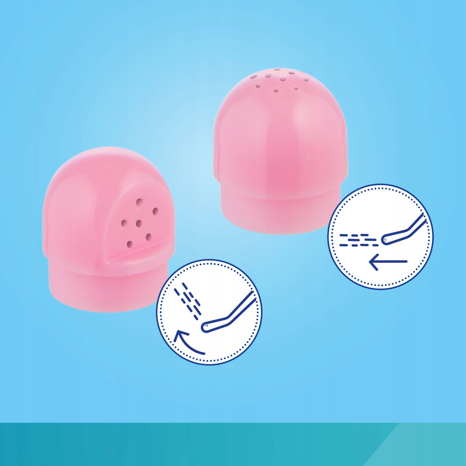 Butelka została zaprojektowana, tak aby szybko i wygodnie ułatwić higienę miejsc intymnych gdziekolwiek jesteś: w szpitalu, w domu czy w podróży. Odwrócona butelka z długą szyjką i dwoma końcówkami do wyboru z różnym kątem strumienia wody, aby lepiej dopasować je do swoich potrzeb, pomaga w dotarciu do trudno dostępnych miejsc. Umożliwia to podmywanie się bez schylania lub w ciąży, gdy brzuszek utrudnia czynności higieniczne. Butelka jest lekka i miękka, łatwa do ściśnięcia.
