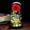 Piękna róża ze światłami LED zamknięta w kopule ze szkła i drewnianą podstawą. W zestawie pudełko prezentowe.