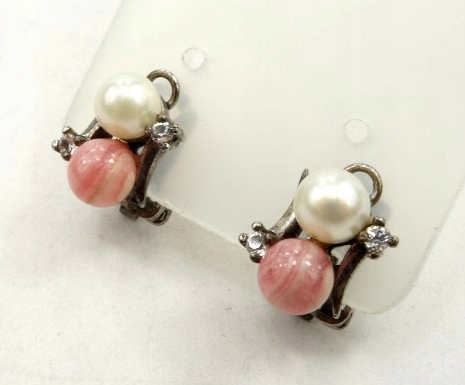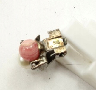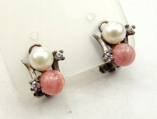 Klipsy wykonano ze srebra próby 835. Języczki przy zapięciu z metalu nieszlachetnego. Naturalne rodonity, perły hodowane. Zapięcia trzymają solidnie.