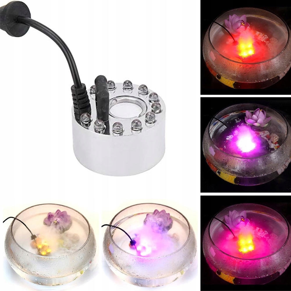 Terrarium z ultradźwiękowym zamgławiaczem ma kolorowe oświetlenie z 12 diodami LED, może być używane jako dekoracja, tworzy magiczną atmosferę, szczególnie idealną na Halloween i inne święta.