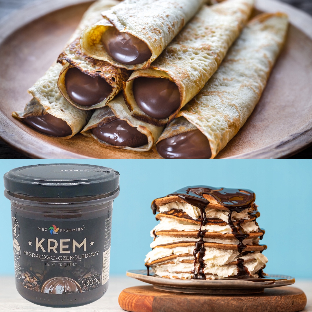 Eksperymentuj z różnymi kombinacjami i ciesz się wyjątkowym smakiem Kremu Migdałowo Czekoladowego KETO bezglutenowego marki Pięć Przemian!