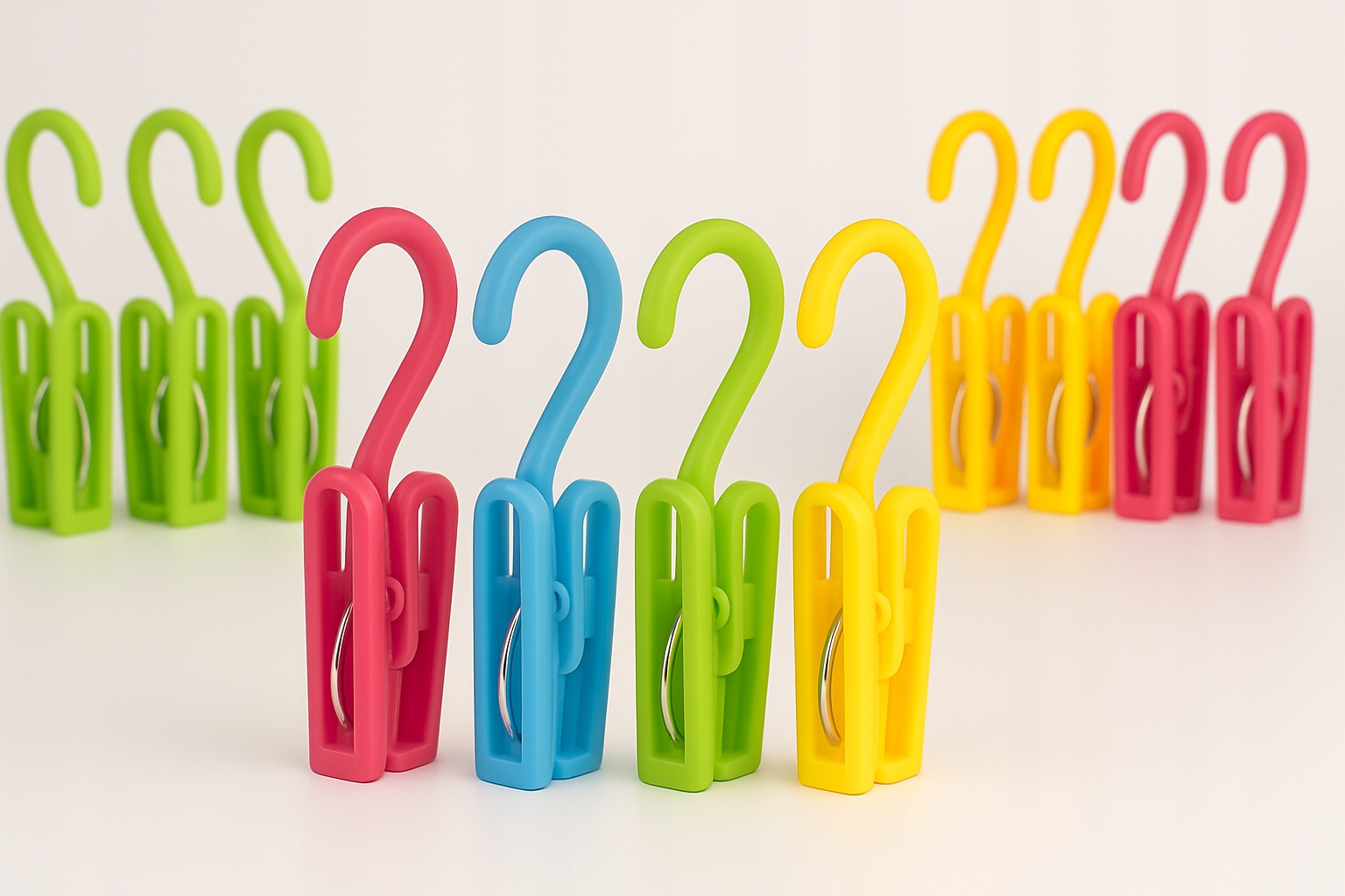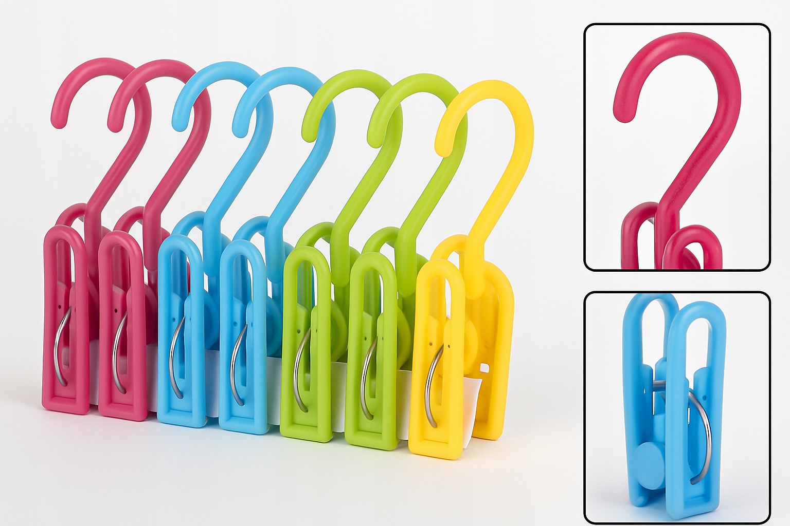 ZACISKOWE klamerki z haczykami w różnych kolorach.