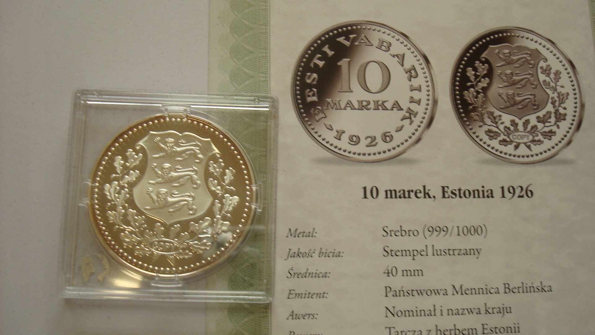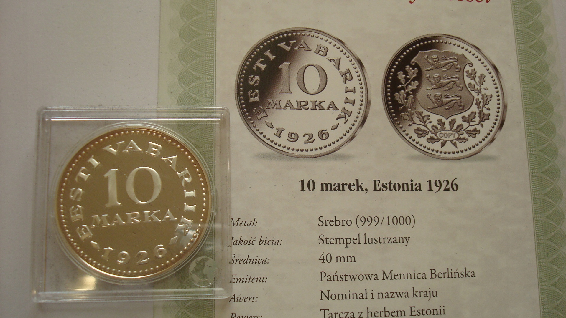 KOPIA/REPLIKA. Estonia 10 marek 1926 – SREBRO