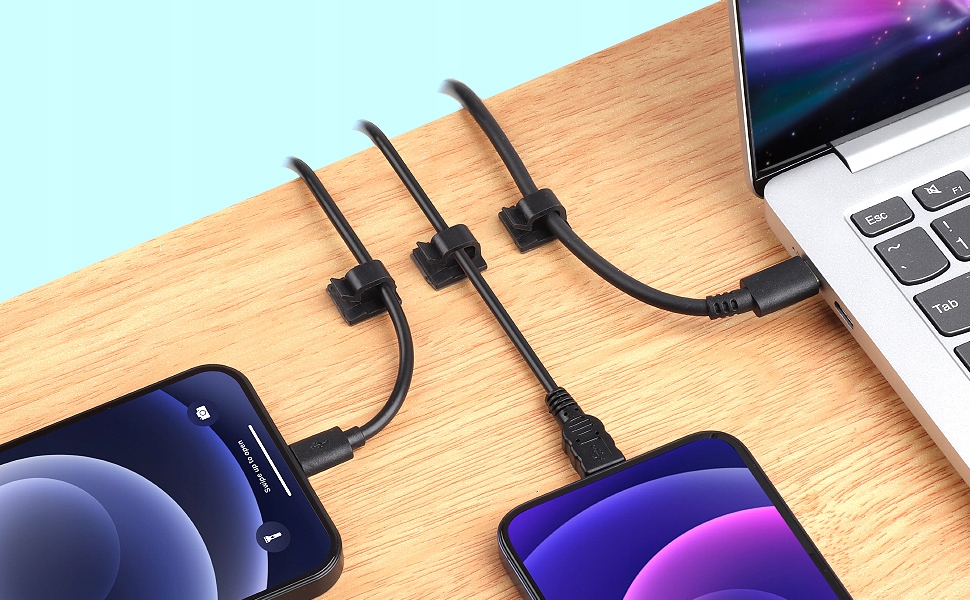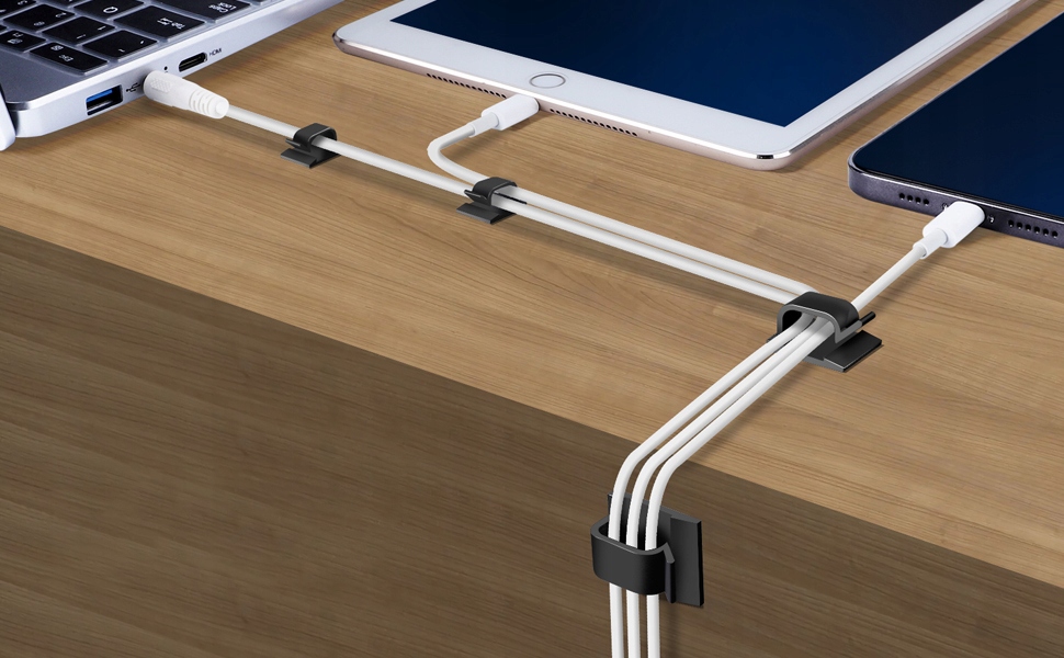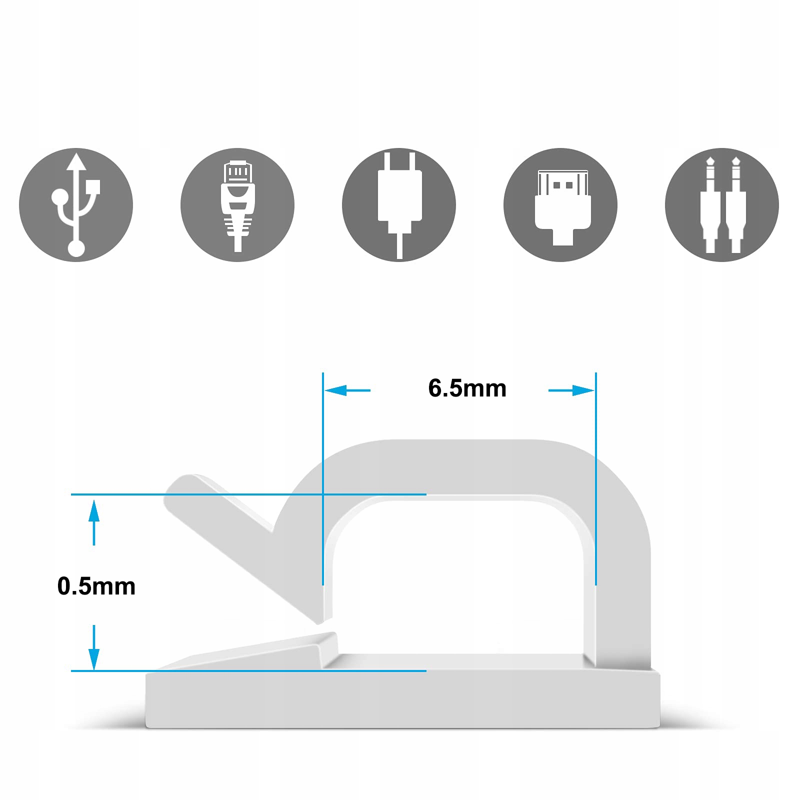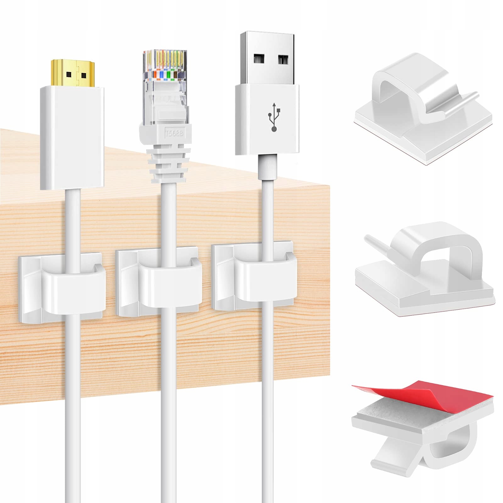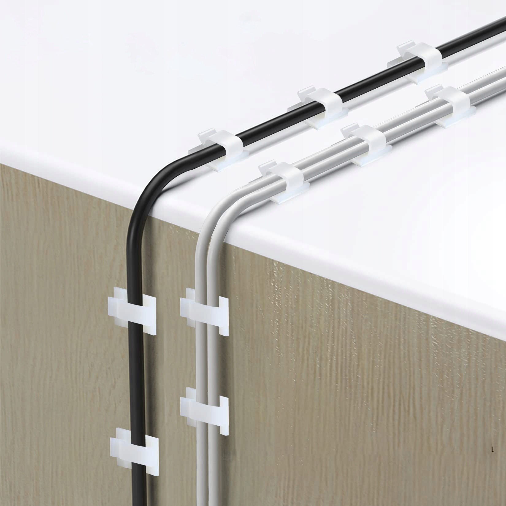 Samoprzylepne zaciski do kabli białe (100 szt.), ulepszone zaciski do przewodów do zarządzania kablami, mocne zaciski do przewodów, uchwyty na przewody do ściany, pod biurkiem, listwy LED, przewody elektryczne, zaciski do kabli Ethernet_Small