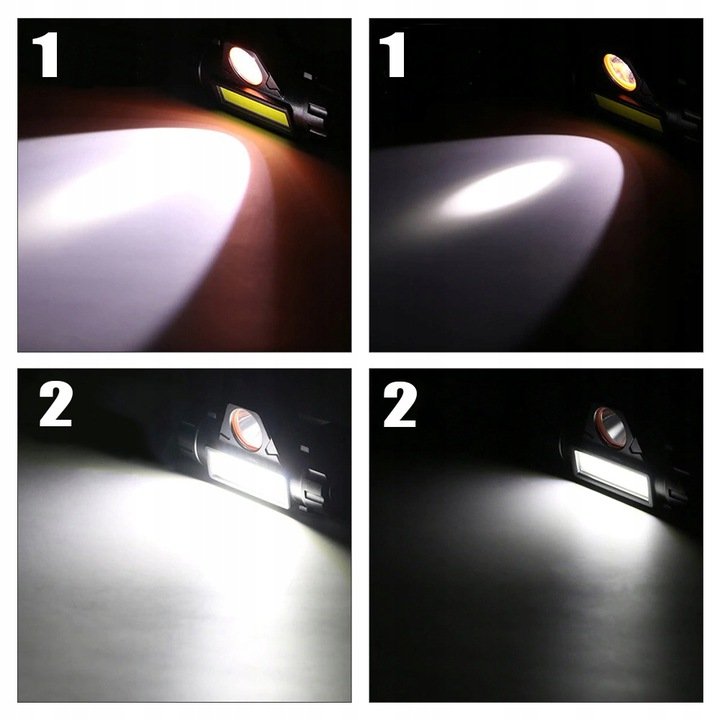 ✅ Dwa tryby świecenia – strumień skupiony (górna lampka LED) oraz mini reflektor (dolna lampka LED)