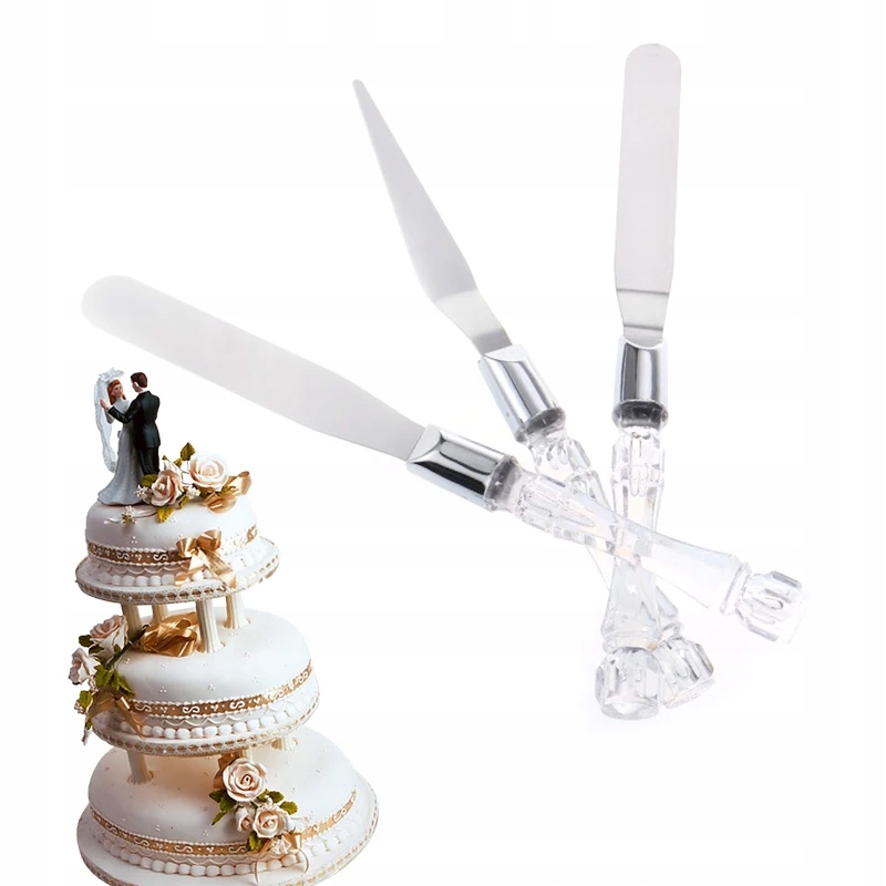 SZPATUŁKI CUKIERNICZE ŁOPATKI DEKORACJI CIASTA TORTU STALOWE ZESTAW 3 SZT