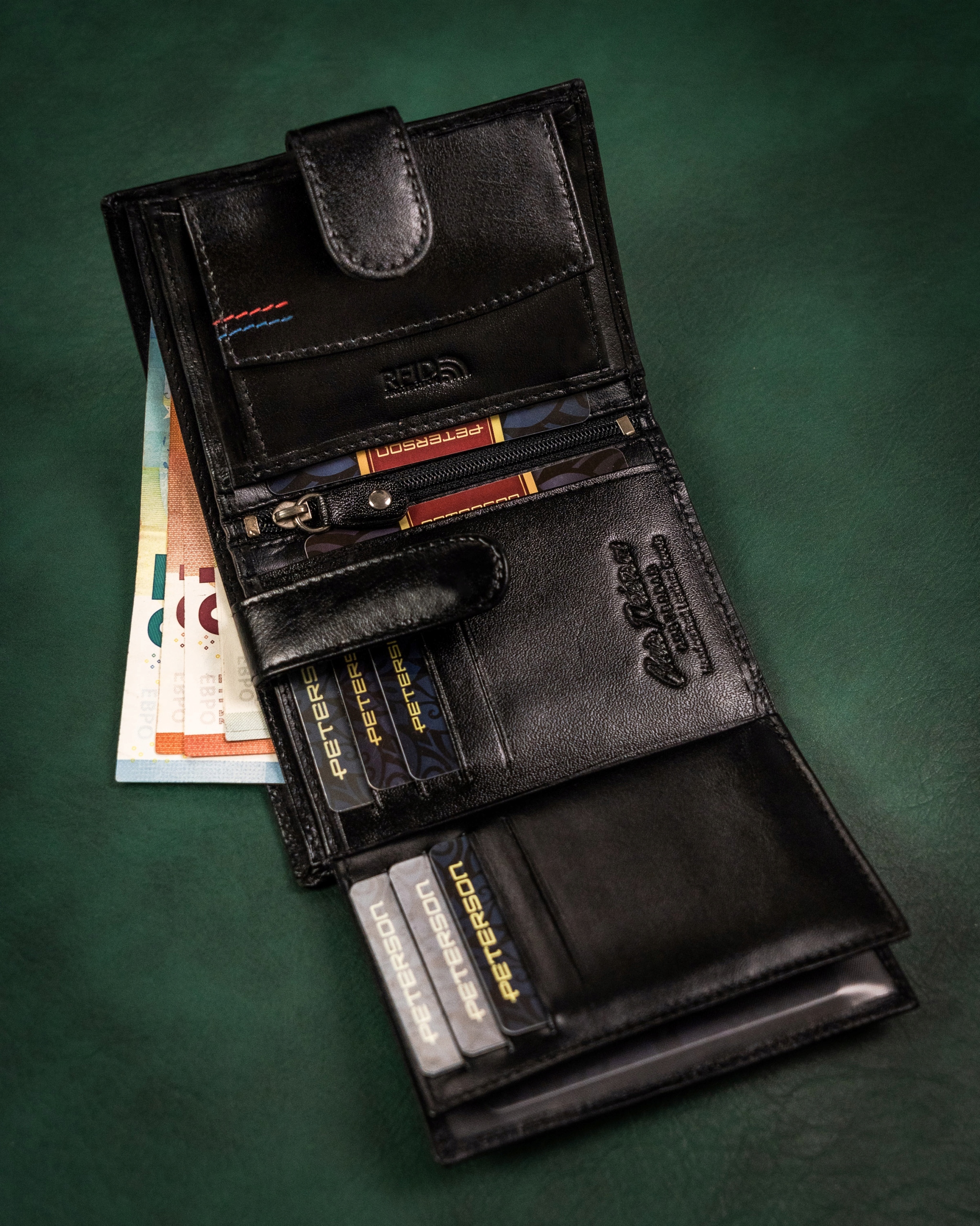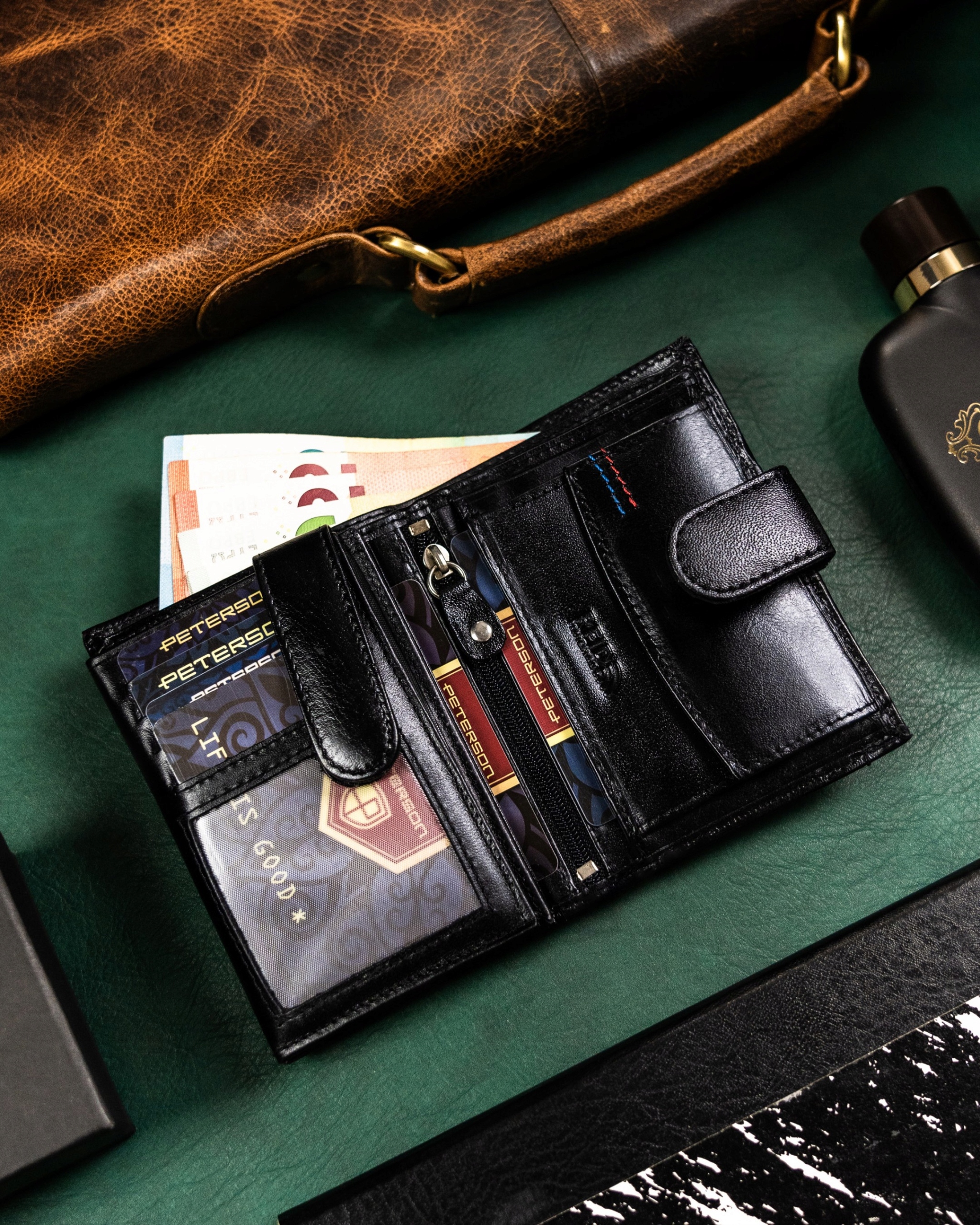 Galanteria marki Peterson® cieszy się ogromną popularnością. Każdy produkt projektowany jest zgodnie z aktualnie obowiązującymi trendami, nawiązując do oryginalnej i ponadczasowej stylistyki. Bogactwo kolorów i wzorów, jak również wysoka jakość wykonania to cechy, które charakteryzują markę.