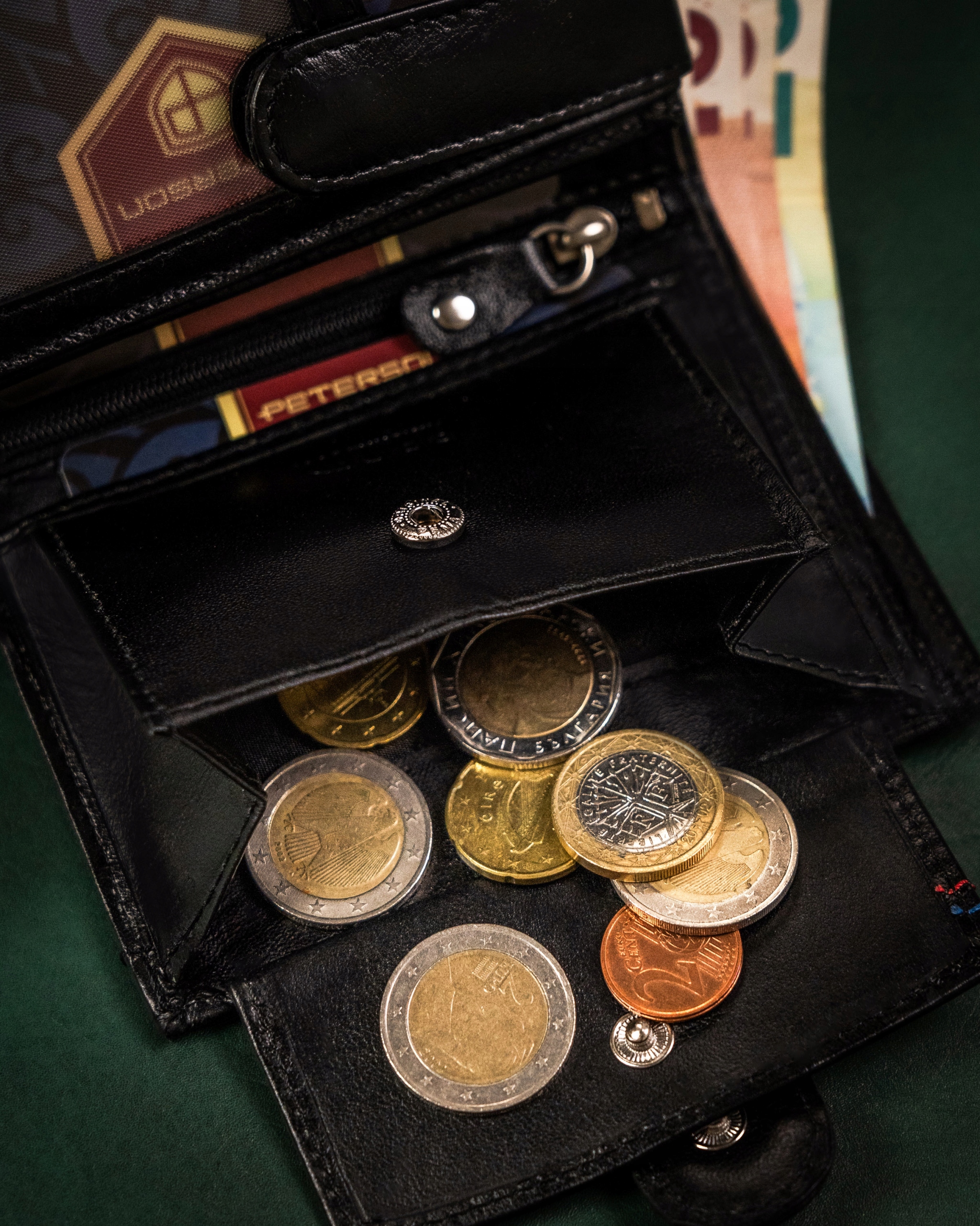 ✅ banknoty schowasz do 2️⃣ otwartych przegródek wyszytych po całej szerokości portfela;