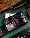 #️⃣ Pojemny portfel ze świetną organizacją wnętrza| Bez problemu mieści karty i dokumenty, które wszyscy posiadamy, jak dowód osobisty czy prawo jazdy, ale też dokumenty o większym formacie. Dowód rejestracyjny w okładce z wydziału komunikacji też znajdzie tu swoje miejsce, nie mówiąc już o gotówce - z łatwością zmieścisz tu wiele monet i banknotów