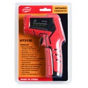 Wysokiej jakości termometr bezkontaktowy marki Benetech o zakresie temperatur od -50 do +800 °C. Urządzenie wyposażone jest w celownik laserowy, który umożliwia precyzyjne nacelowanie badanego punktu. W urządzeniu zastosowano dobrej jakości materiały, a ergonomiczna budowa poprawia wygodę użytkowania termometru. Podświetlany KOLOROWY wyświetlacz umożliwia pracę z urządzeniem w ciemności. Pirometr wyposażony jest w funkcję automatycznego wyłączenia zwiększając oszczędność w zużyciu baterii.