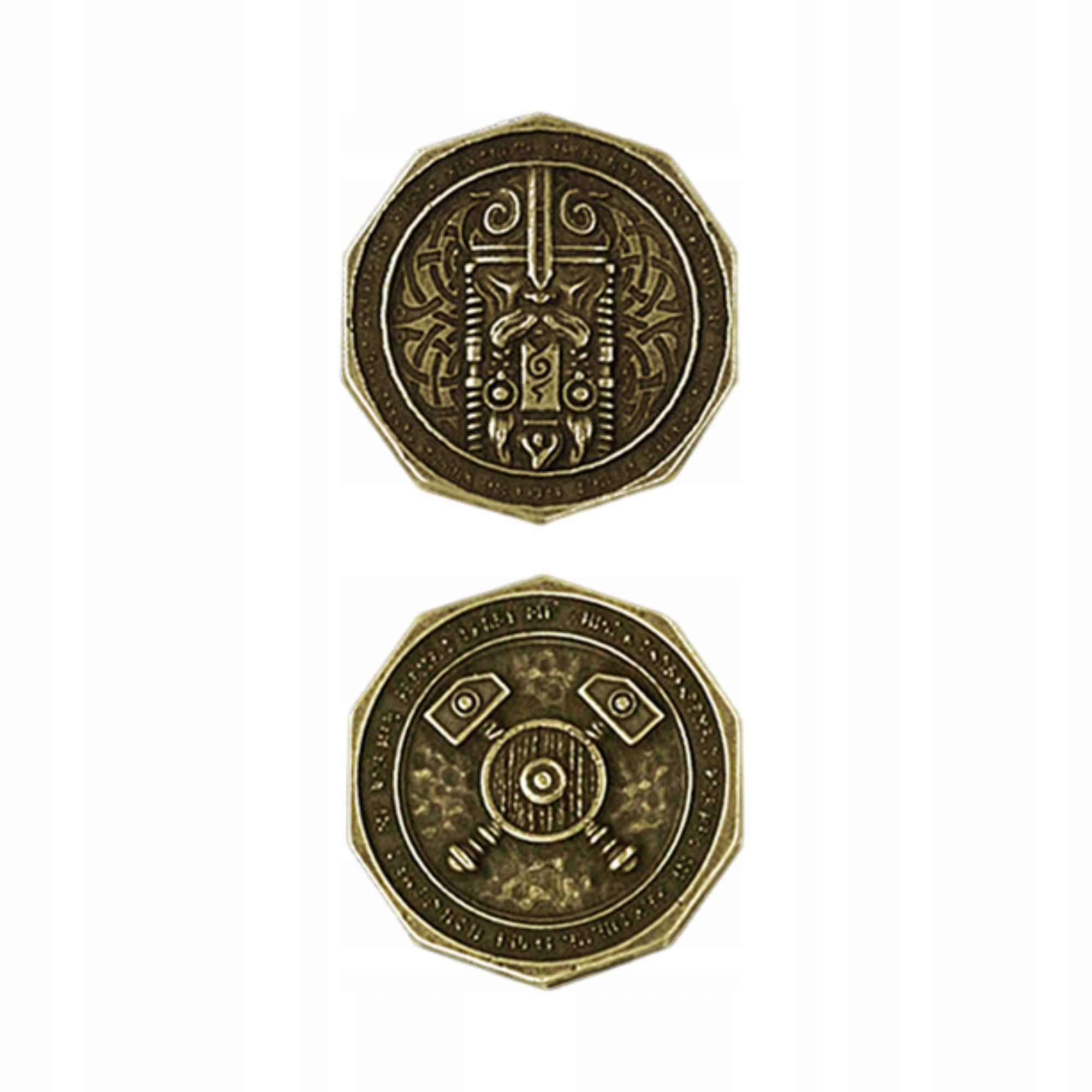Wykonana ze stopów cynku ciężkich moneta, która została ozdobiona symbolami krasnoludzkimi.