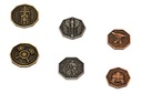 W tej kategorii znajdziesz monety metalowe związane z konkretnymi motywami lub tytułami gier. Zestawy zawierają produkty imitujące złoto (pokryte warstwą mosiądzu), srebro (warstwą niklu) lub miedź (warstwą miedzi). Ich wzory nawiązują do gier postapo, fantasy, steampunkowych, utrzymanych w klimacie średniowiecza, starożytności, kosmosu, oraz powieści Lovecrafta.