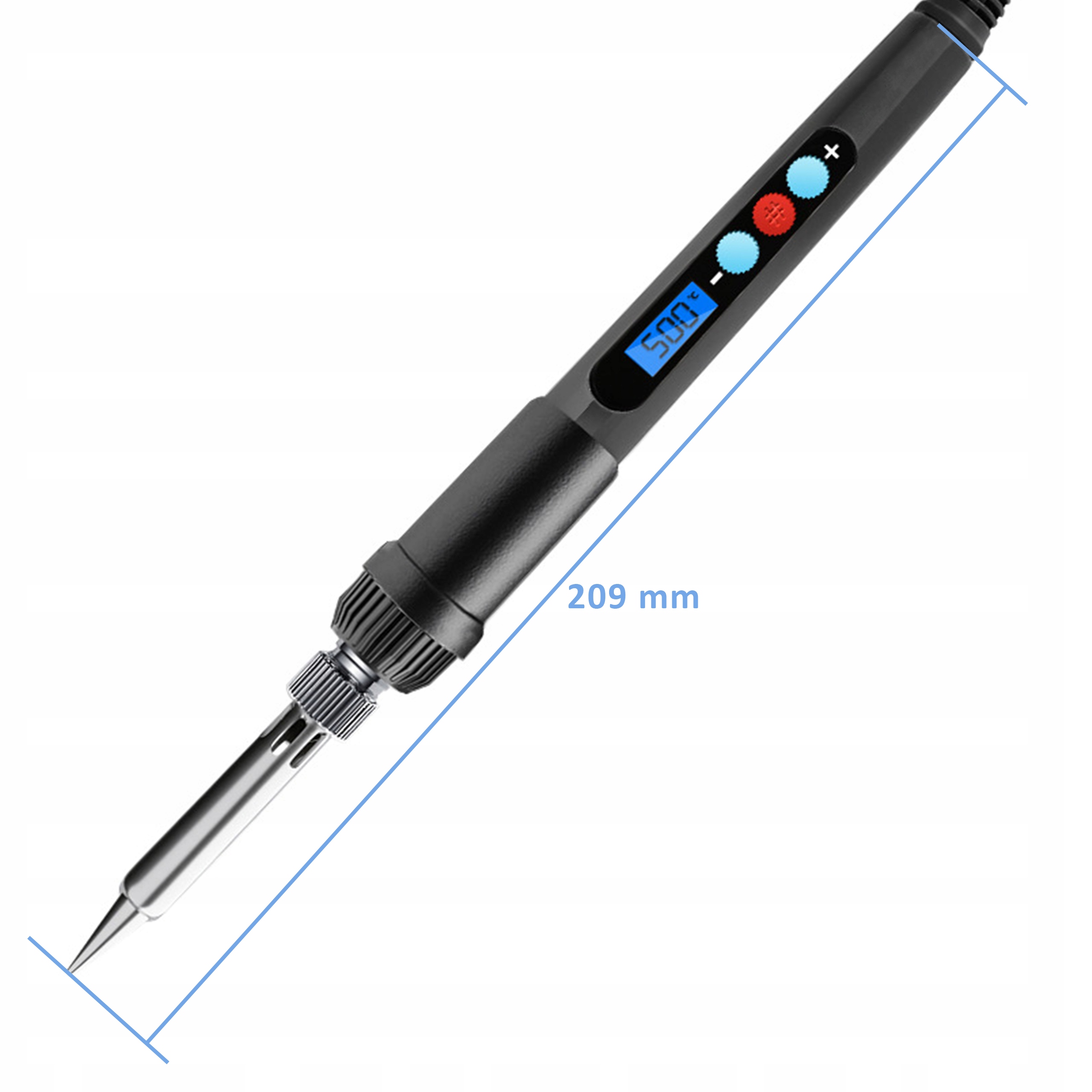 ☑️ Po włączeniu lutownicy przyciskami + oraz - możliwe jest dopasowanie temperatury lutowania z dokładnością do 1 stopnia. Jednostką ustawień mogą być stopnie Celsjusza, ale również jest możliwość zmiany na skalę Fahrenheita.