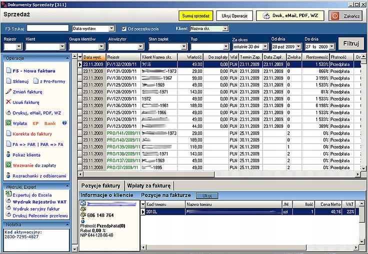 - Możliwość wystawienia faktury z ręki, klienta lub towaru nie wprowadzonego do kartoteki