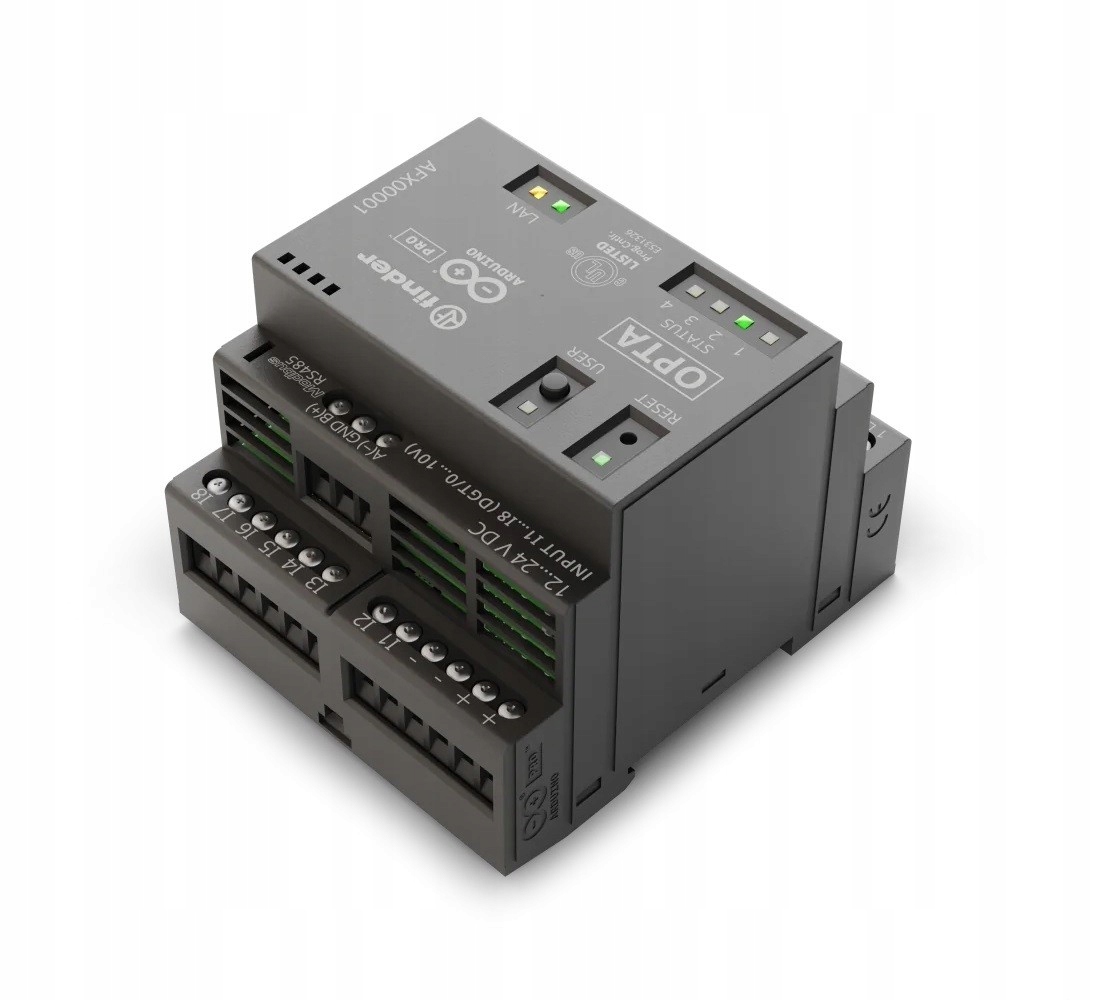 Arduino Opta to zaawansowany, bezpieczny i łatwy w obsłudze sterownik mikro-PLC ułatwiający dodanie w aplikacjach przemysłowych możliwości oferowanych przez obszar Internetu Rzeczy (IoT). Pozwala rozwijać projekty automatyzujące systemy produkcyjne, jednocześnie korzystając z ekosystemu Arduino . Urządzenie obsługuje zarówno skrypty Arduino, jak i standardowe języki PLC, takie jak LD (Język Drabinkowy) i FBD (Diagram Bloków Funkcyjnych) , co czyni je idealnym narzędziem dla inżynierów PLC. Sterownik powstał we współpracy z firmą Finder, cenionym producentem urządzeń do automatyzacji przemysłowej i budowlanej.