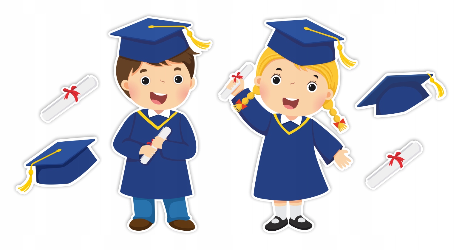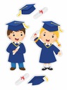 Zestaw składa się z 2 x dużych dzieci, 2 x biretami, 2 x "dyplomy" - idealne na uroczystość zakończenia roku w szkole lub przedszkolu.