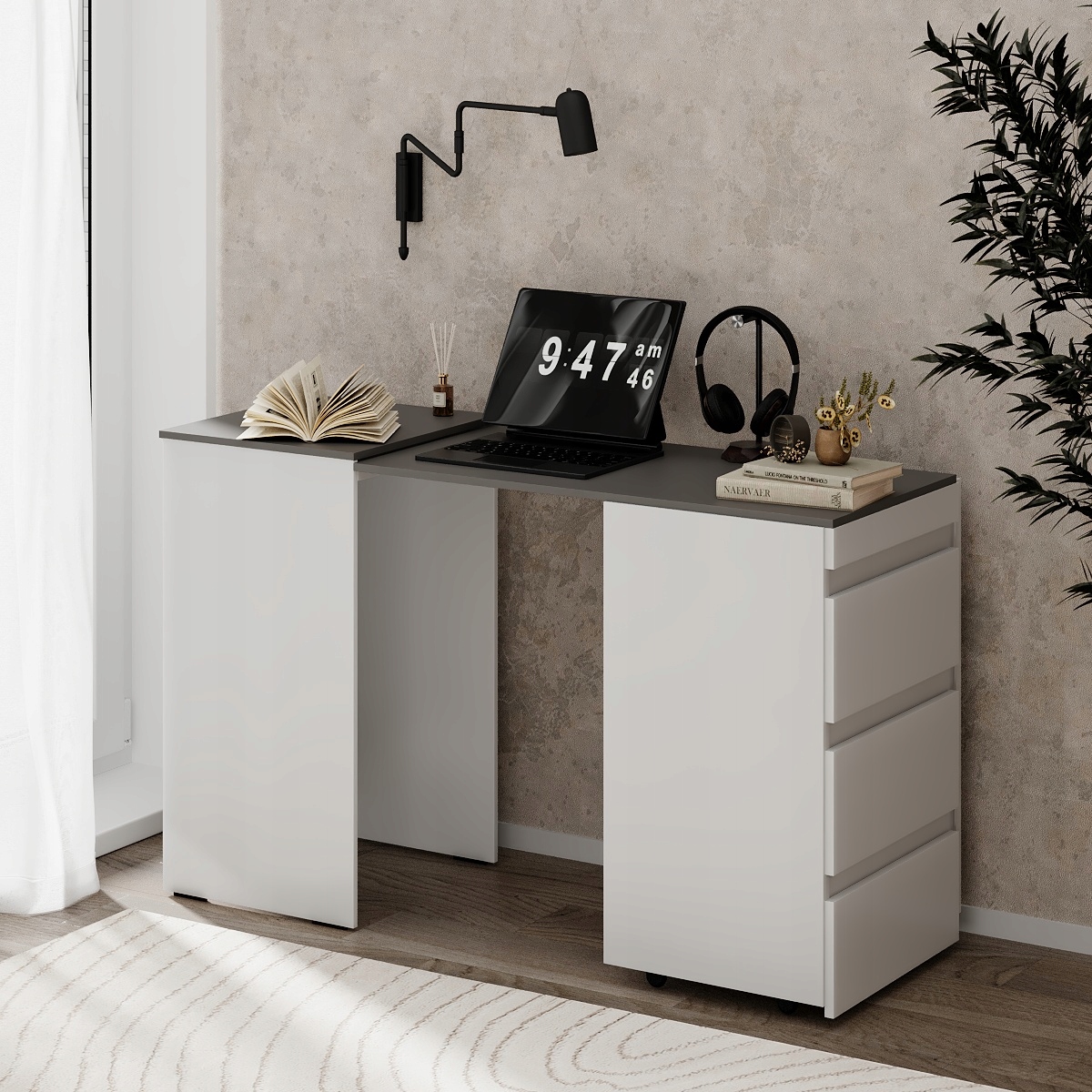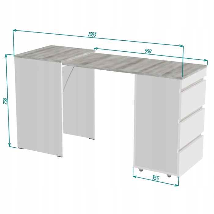 Kompaktowy rozmiar, który pozwala zaoszczędzić miejsce, gdy nie jest używany, a jednocześnie oferuje dużą powierzchnię roboczą w momencie potrzeby. To idealne rozwiązanie dla osób poszukujących mebli, które są zarówno praktyczne, jak i stylowe, gwarantując jednocześnie trwałość i solidność przez wiele lat użytkowania.