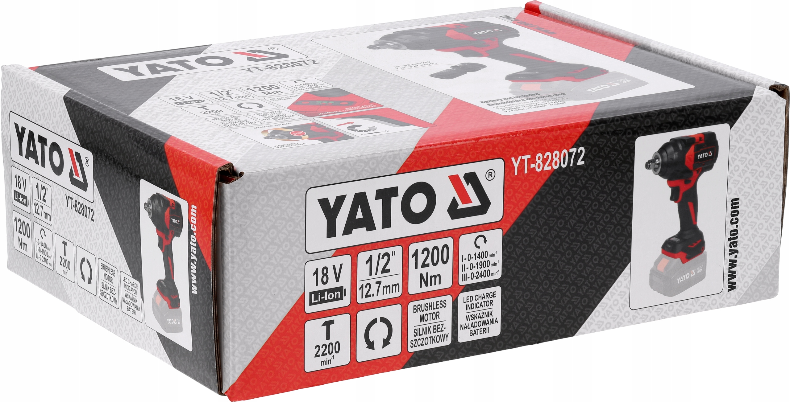 Bezszczotkowy klucz udarowy zasilany akumulatorem platformy YATO 18V. Dzięki kompaktowym rozmiarom i momencie obrotowym 1200 Nm sprawdzi się zarówno w warsztacie samochodowym, jak i na budowie.