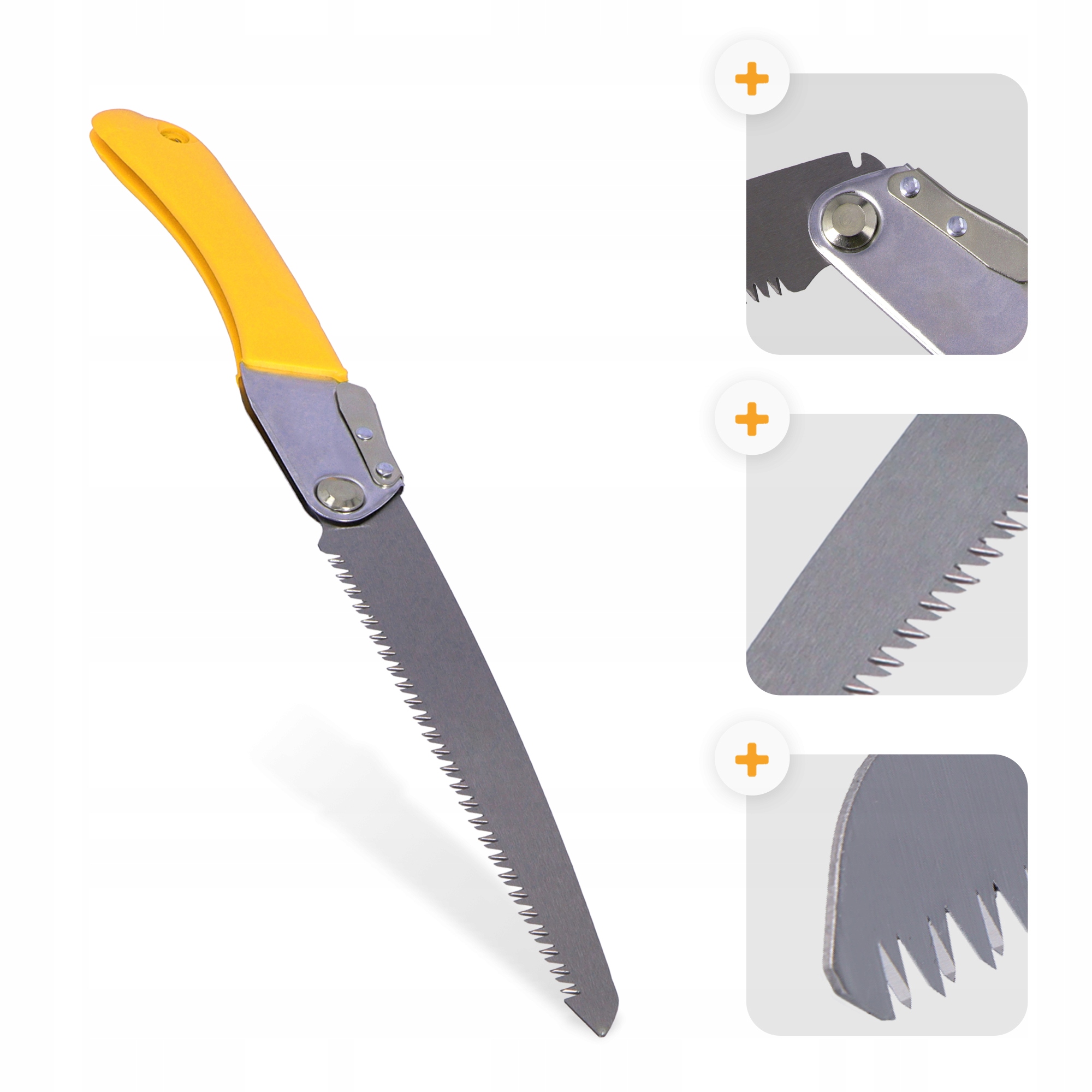 Składana piła ogrodowa to idealne narzędzie dla każdego, kto ceni sobie wysoką jakość, komfort oraz prostotę użytkowania. Wyjątkowo trwałe ostrze o długości 210 mm, wykonane ze sprężystej stali manganowej zapewnia doskonałą wydajność i odporność.