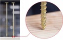 Дополнительные витки на шпике позволяют быстрее „поймать " древесину на первом этапе завинчивания. Это преимущество особенно важно для соединений, где давление винта затруднено. Двойная резьба приводит к тому, что мы достигаем того же эффекта с гораздо меньшим прижимным усилием.