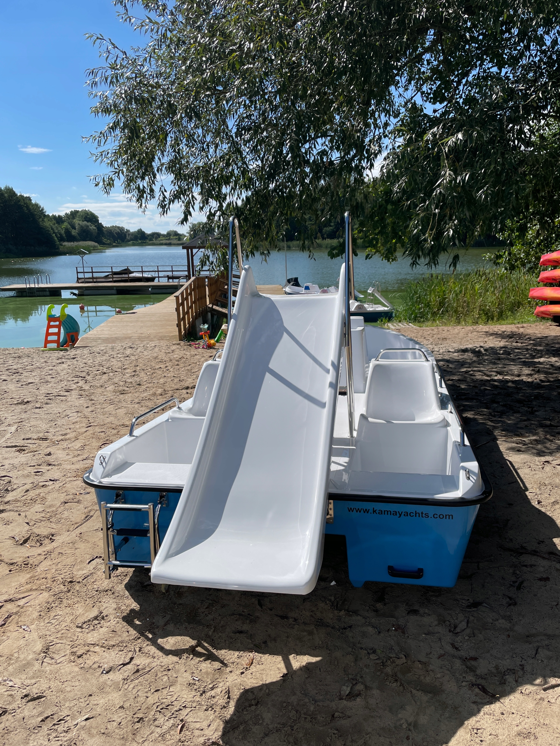 Łódź jest bardzo stabilna, pakowna, zapewnia wiele miejsc do siedzenia i leżenia. Nawet osoby bojące się wody poczują się na niej bezpiecznie. Wszyscy będą zachwyceni jej ergonomią, wygodą, ilością miejsca i przemyślaną konstrukcją :)