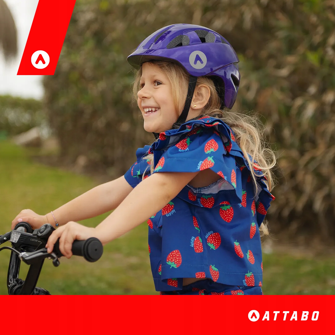 Kask ATTABO K200 jest wyposażony w 17 otworów wentylacyjnych, które zapewniają doskonałą cyrkulację powietrza, kluczową podczas intensywnej aktywności fizycznej. Odpowiednia wentylacja jest niezbędna, aby utrzymać głowę dziecka w chłodzie i komforcie, co zwiększa przyjemność i wydajność jazdy rowerowej. Otwory te zaprojektowano tak, aby maksymalizować przepływ powietrza przez całą strukturę kasku, odprowadzając ciepło i wilgoć na zewnątrz.