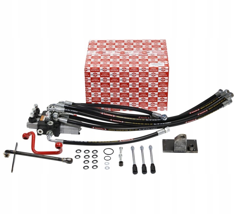 Dzięki kompletnemu zestawowi przewodów, adapterów i uszczelek, montaż jest szybki i bezproblemowy, a ciągnik zyskuje nowoczesny i bardziej funkcjonalny system hydrauliczny.