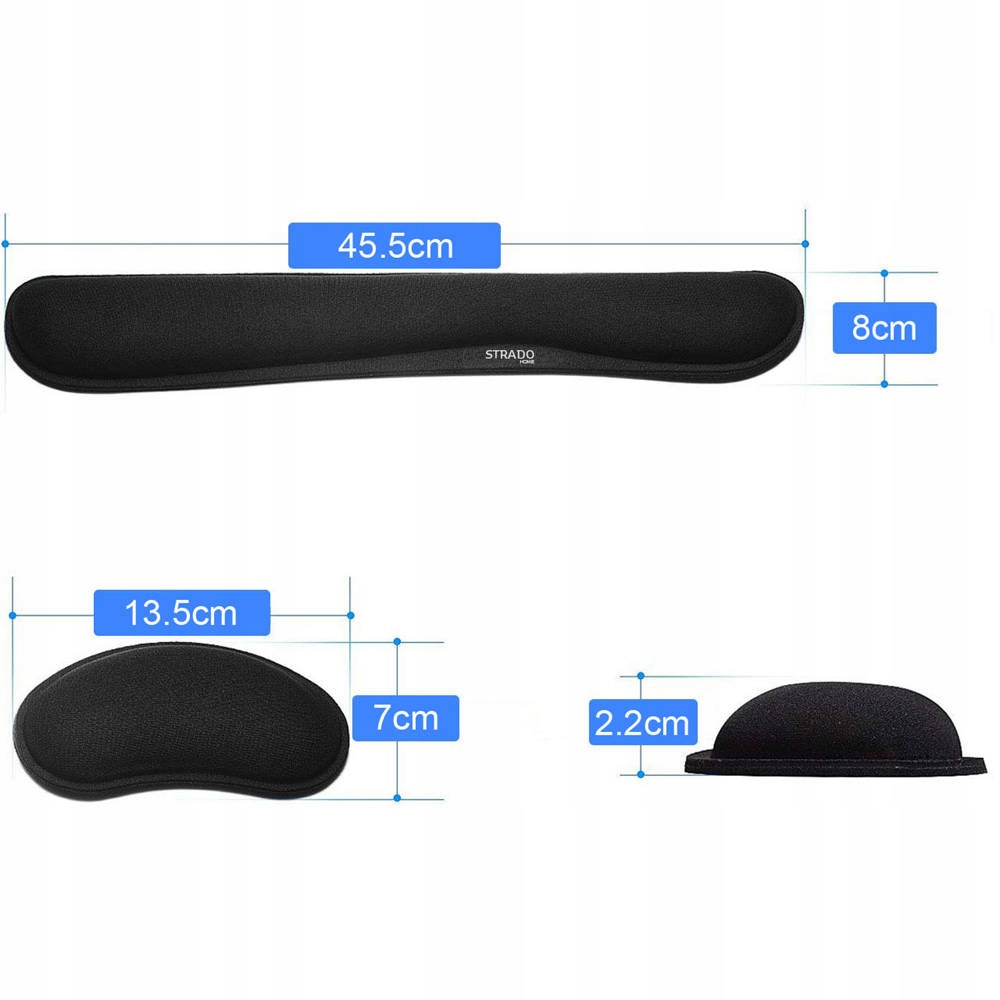 Ergonomiczne podkładki Strado oferują maksymalny komfort dzięki poduszkom pod nadgarstki wypełnionym specjalną pianką zapamiętującą kształt. Dzięki temu podkładki wygodnie dopasowują się do nadgarstka i zapamiętują jego naturalny kształt i pozycję. Te podpórki pod nadgarstki utrzymują je w najlepszej ergonomicznej dla nich pozycji, a także zapobiega otarciom.