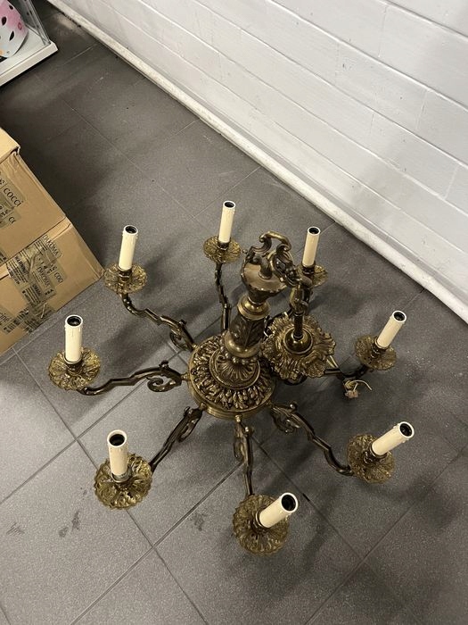 Przedmiotem sprzedaży jest bardzo ładny duży żyrandol 8-ramienny mosiężny. Stan bardzo dobry. Możliwość zakupu w systemie ratalnym . Możliwy transport lub odbiór osobisty. Przedmiot dostępny w sklepie w Pionkach.
