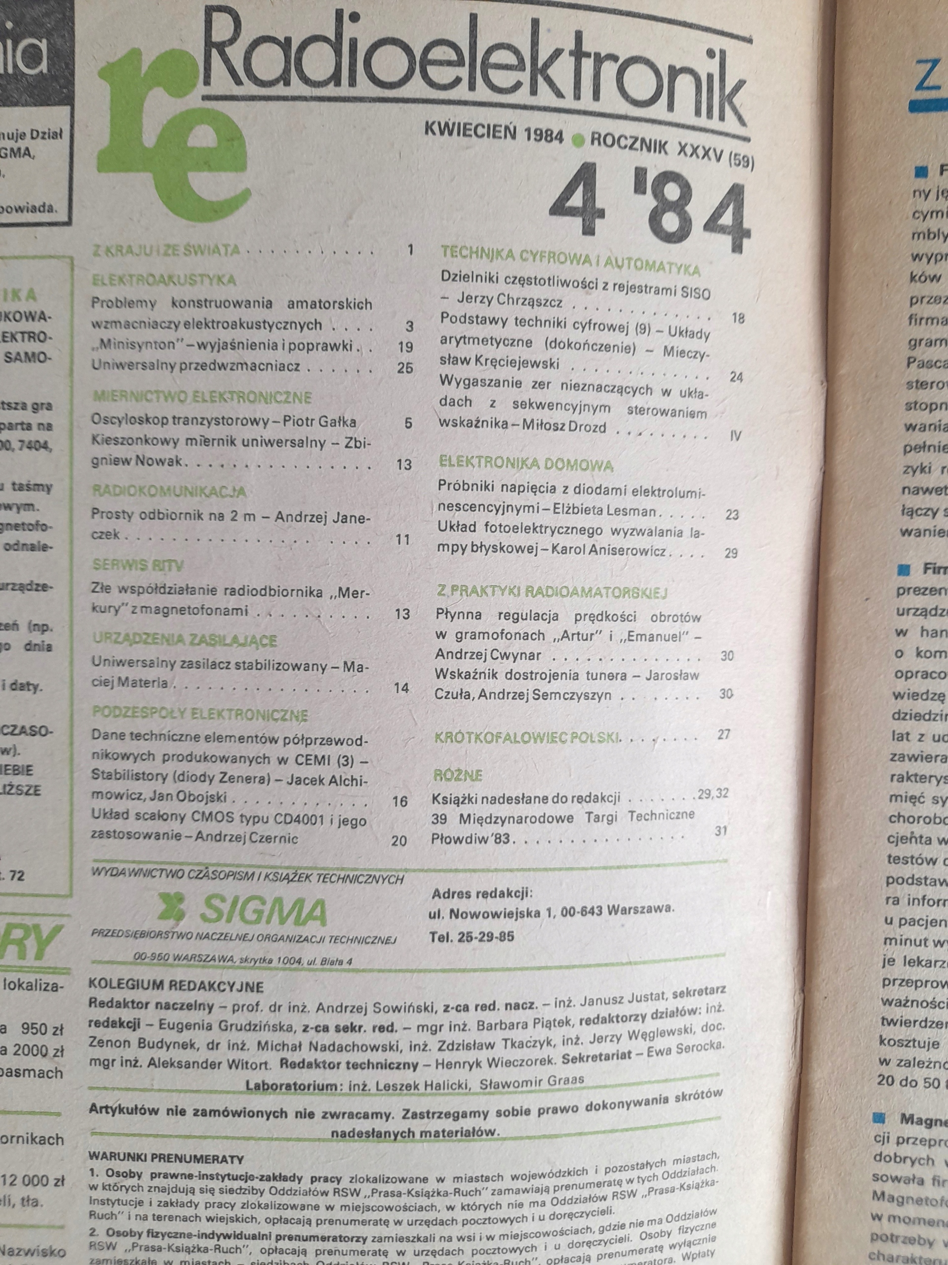 Название Radioelektronik nr 4,5,7,8 z 1984 roku