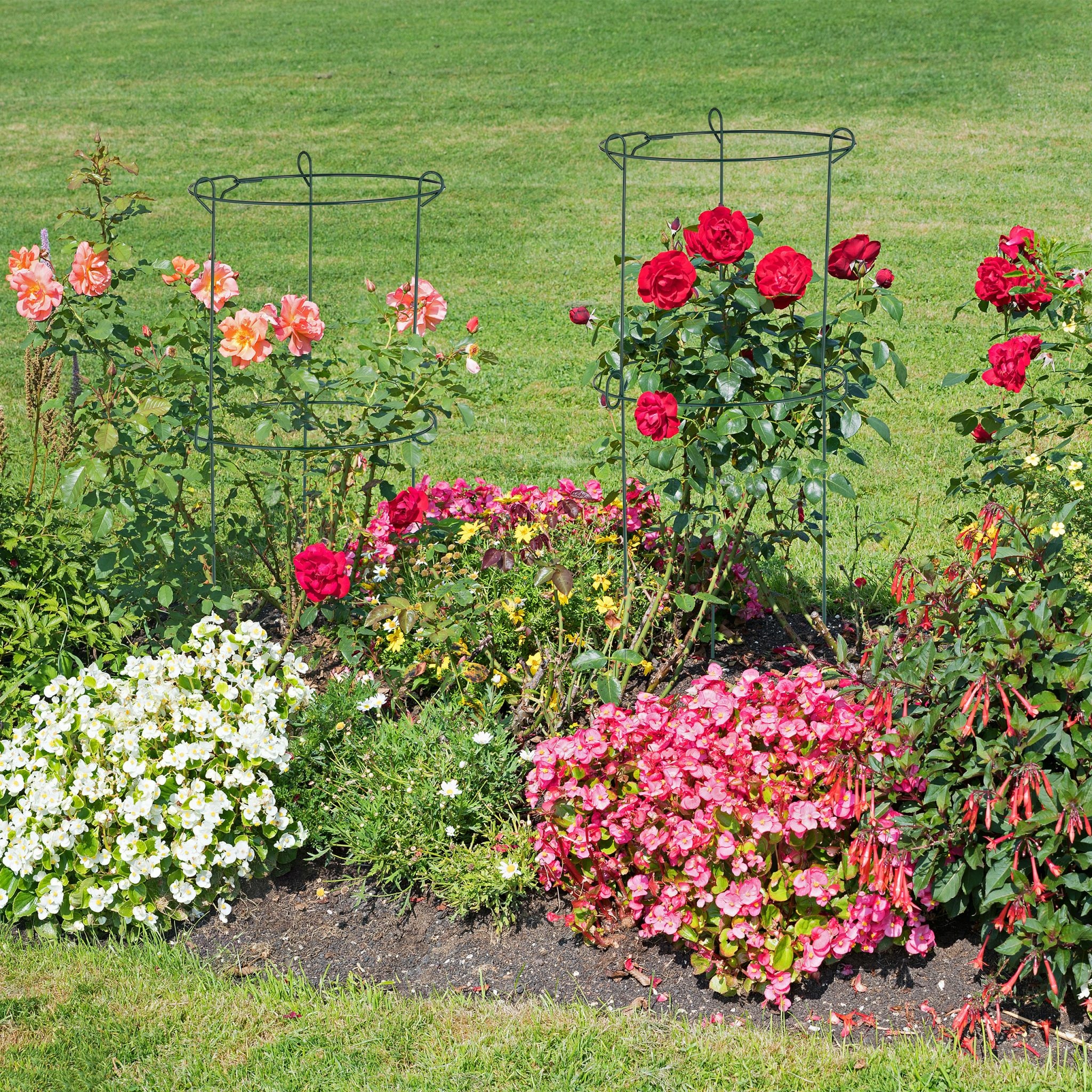 Podpórka do kwiatów i warzyw wykonana została ze stali i plastiku. Jest odporna na warunki atmosferyczne, można jej używać zarówno w szklarni jak i na otwartej przestrzeni. Montaż jest prosty, wystarczy ułożyć odpowiednio nogi na pierścieniach i wbić je w ziemię.