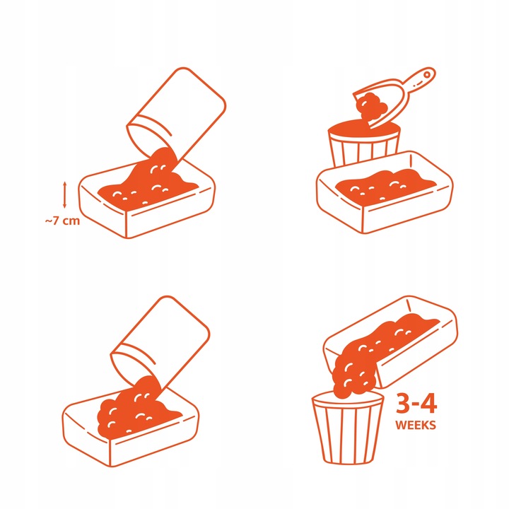 3️⃣ W razie potrzeby dosyp odpowiednią ilość żwirku aby Twój pupil mógł komfortowo korzystać z kuwety.