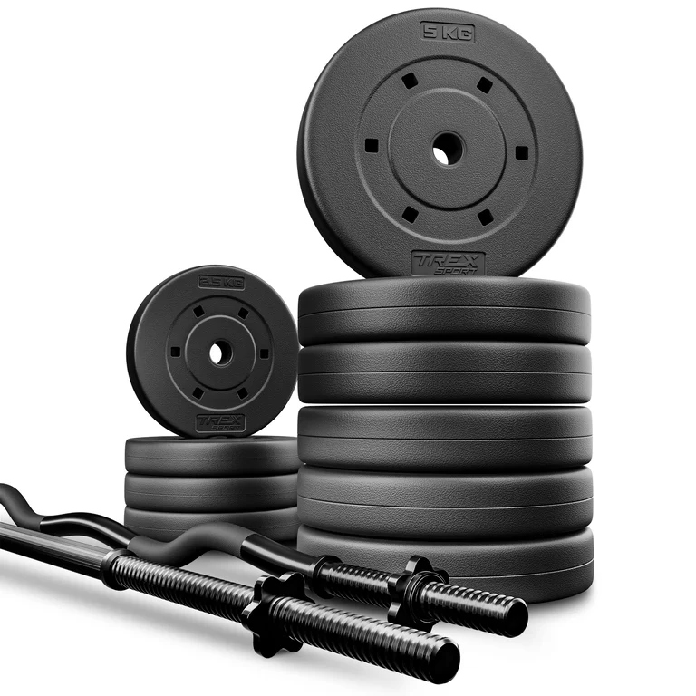 W zestawie obciążeń ze sztangą TREX SPORT znajdują się: